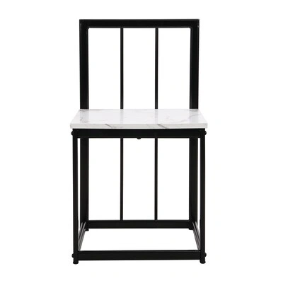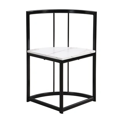 157New in box, 6 piece dining set (***The table TOP is NOT Included! You can add another piece or just use chairs with existing oval table) 2 chair set shapes: The 4 corner chairs are triangle shape to contour to an oval table and the 2 middle chairs square seats. Faux marble finish on the seats Black metal legs/backing Needs to be assembled , all hardware included in box, see photos (I believe the table LEGS are included in this box, so just a new oval top could be added)