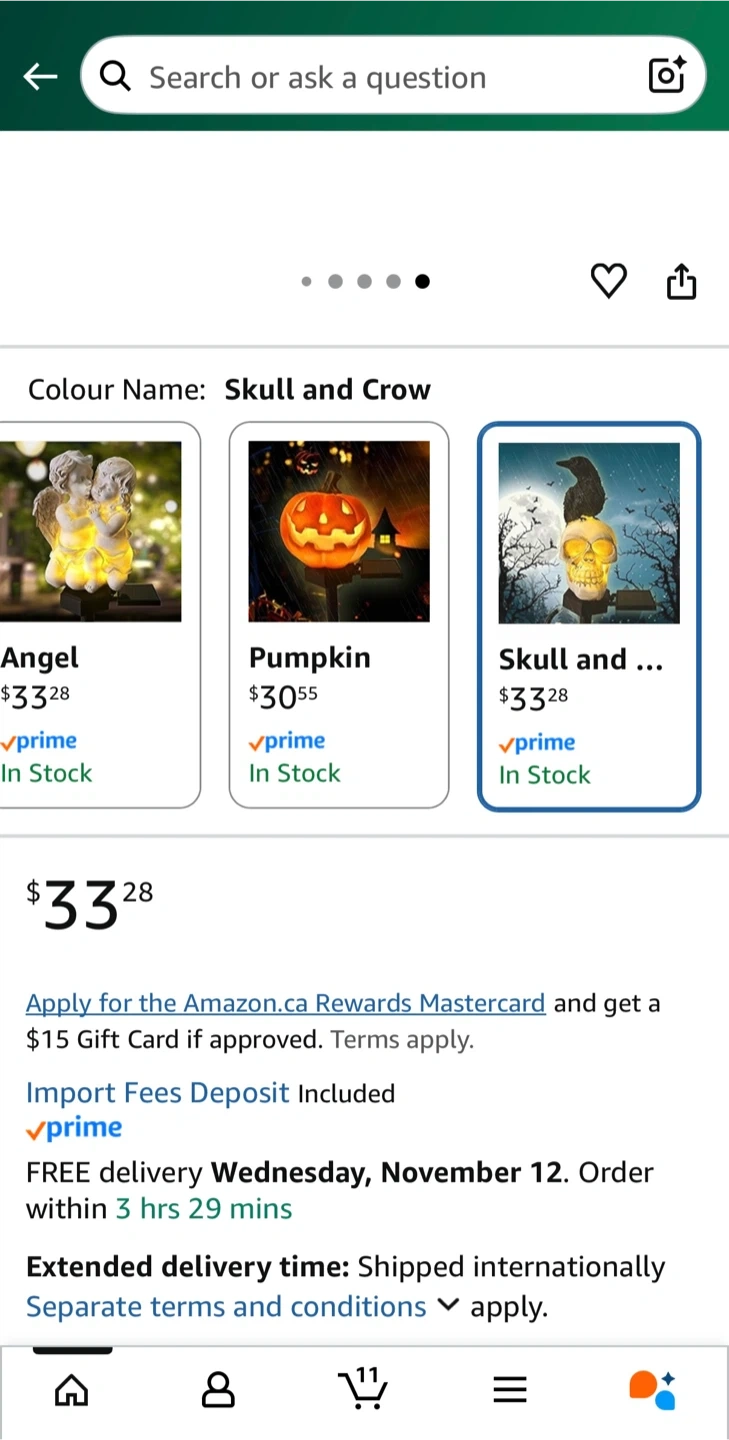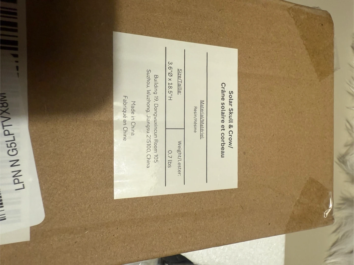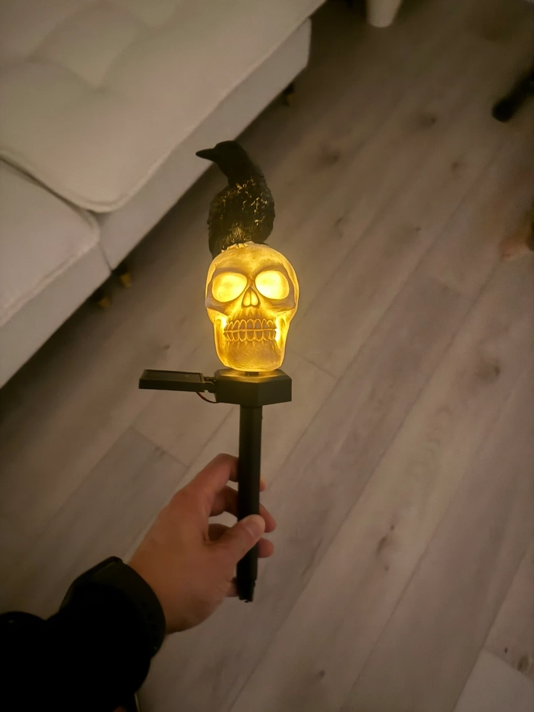 New in box! Solar Skull Head and Crow Outdoor Garden Decoration