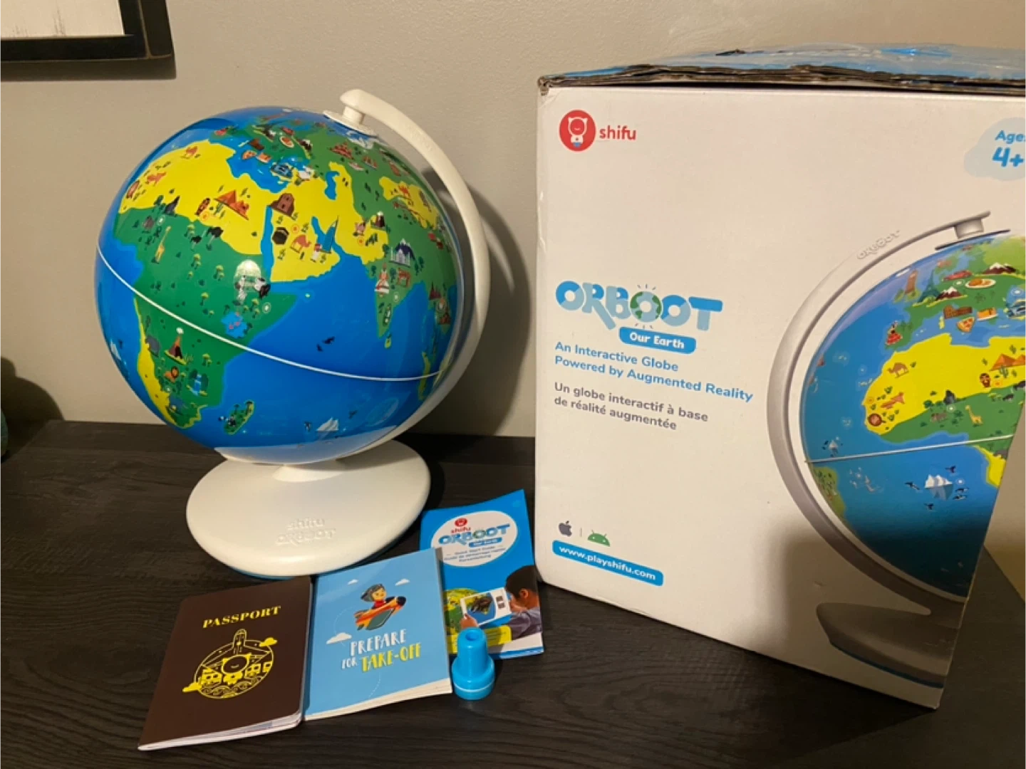 New, distressed box Contents in excellent condition Playshifu Orboot Earth Interactive Kids Globe with 1000+ Facts on Animals, Places & Monuments $30 (retail $60 plus tax) Pickup in Whitby