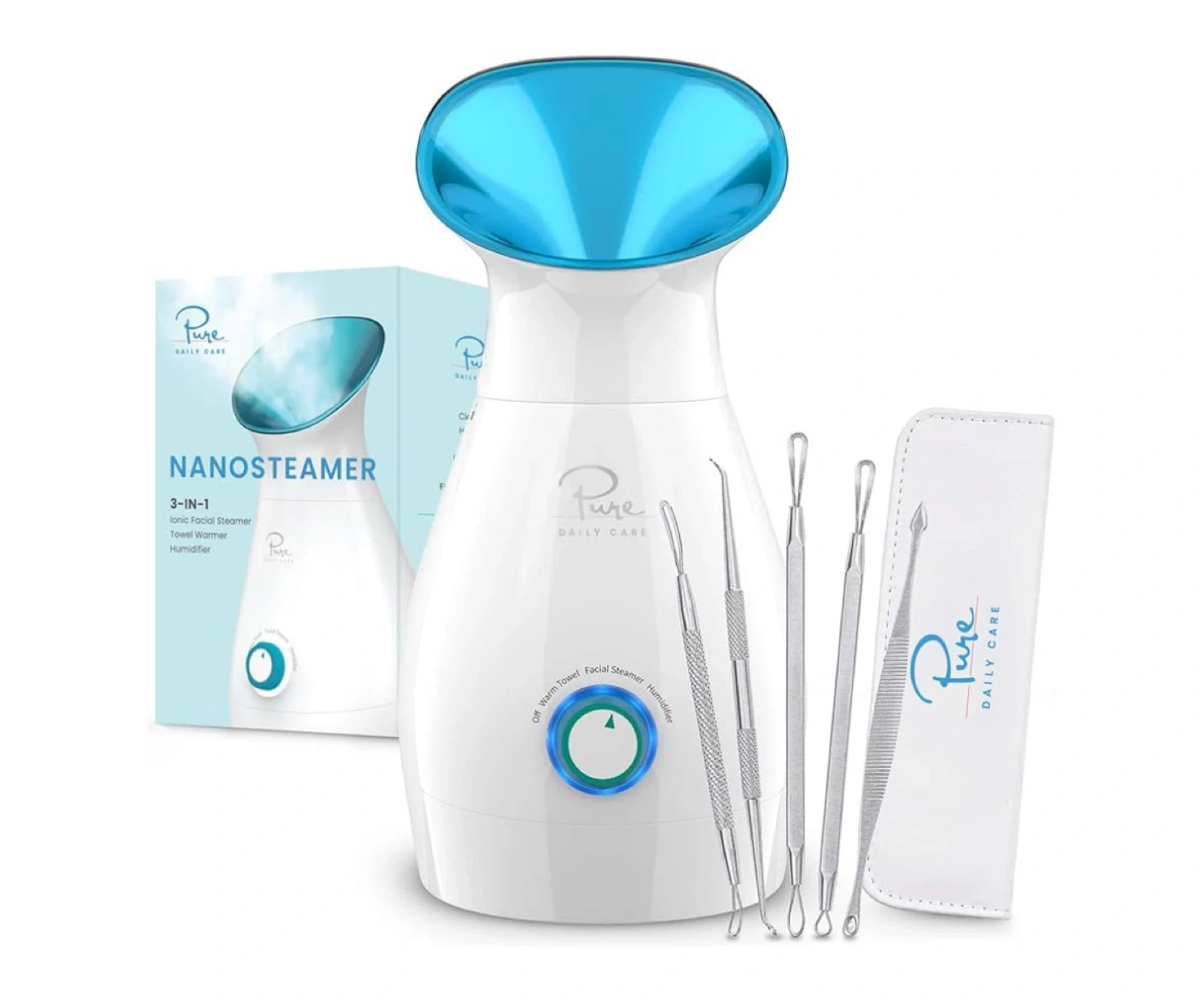 NEW IN BOX. SMOKE FREE HOME. Nano-Ionic Facial Steamer & Humidifier - The Pure Daily Care Nano Steamer is a new type of steamer that generates nano-ionic steam. NanoSteamer does this by combining a conventional heating element with a new ultra sonic vaporizer to produce nano steam with negatively charged ionic particles. Nano steam combined with ionic water particles are up to 10x more effective in penetrating skin. Professional 5-Piece Skin Kit Included - A Bonus 5 piece stainless steel blackhead and blemish extractor kit is included with every Nanosteamer. This kit includes 5 precise instruments that compliment your Nanosteamer perfectly. Followup your steaming session by using this kit to remove blackheads and blemishes effortlessly for perfect skin after every use. Genuine 3-in-1 Beauty & Wellness Device - Nanosteamer is a true multifunctional device can also be set to humidify a room and has an extra chamber to warm towels for ultimate refreshment or quick and easy makeup removal. Full Size Steamer with the Longest Running Time - NanoSteamer is the only full size device with a larger 200ml water tank allows for 30 minutes of working time with a completely silent operation. It also includes an auto shutoff sensor that powers Nanosteamer down when water runs out. What's in the Box โ 1 NanoSteamer Facial Steamer, 5-piece stainless steel skin kit with storage pouch, Power cable, Instruction and support contact manual