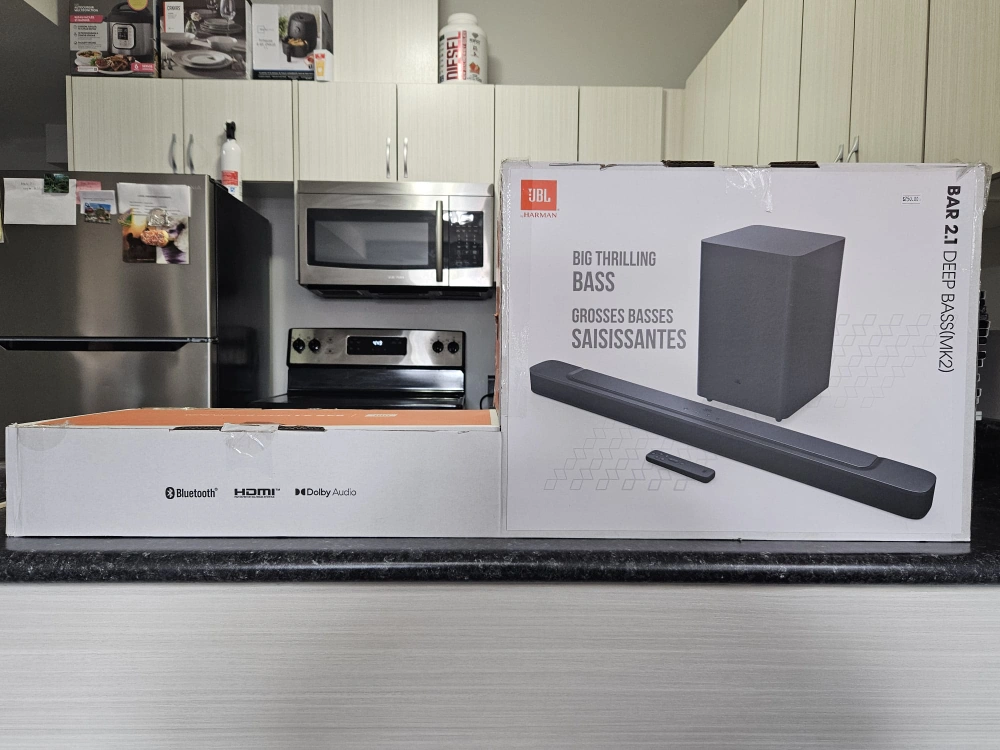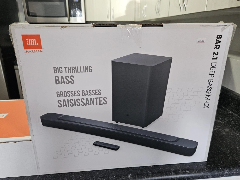 10Selling a brand new JBL Bar 2.1 Deep Bass (MK2) soundbar! It's still in its original packaging. Enjoy big, thrilling bass with this soundbar. It supports Bluetooth, HDMI, and Dolby Audio for a great audio experience. Retails for $250!