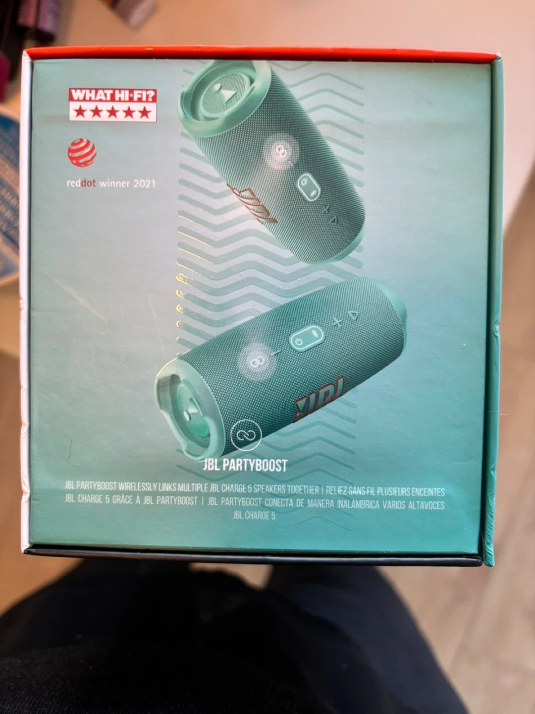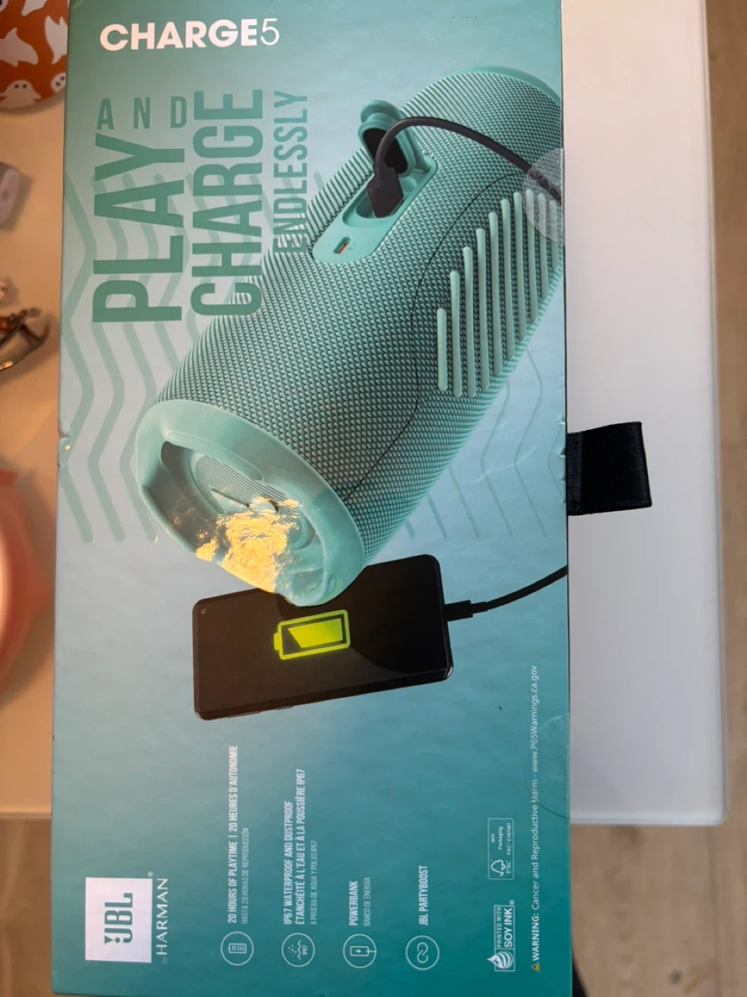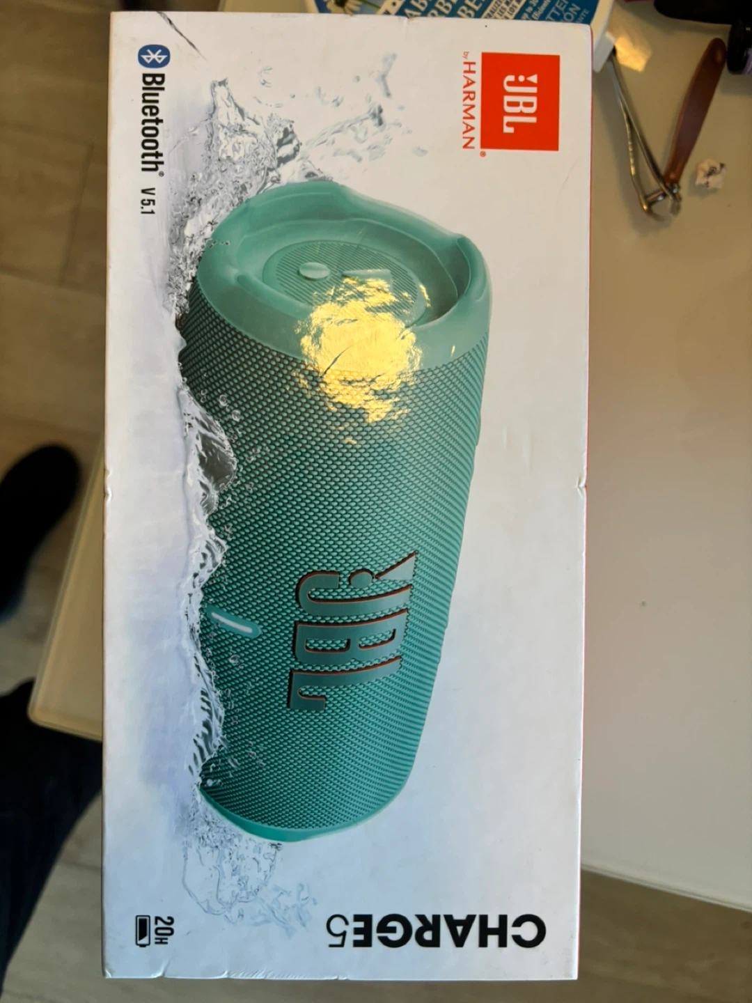 Selling a brand new JBL Charge 5 in teal! It's still in its original box and has never been used. Key features include: - Waterproof and dustproof (IP67 rated) - 20 hours of playtime - Powerbank function - JBL PartyBoost for connecting with other JBL speakers Perfect for taking your music on the go!