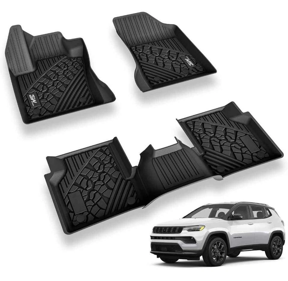 5Fit Jeep Compass 2017-2025 floor mats with durable and heavy-duty TPE material which is comfortable, non-toxic, odorless and thick, will prevent spills or messy from leaking into your original factory mats, keep your carpet always like new look. ALL-WEATHER: All of our floor mats will be used to all weather, will protects your car against rain, slush, dirty shoes, salt, snow, mud and everything else. You can drive at anytime when you would like even in extreme hot or cold weather. PERFECT FIT: Perfect design for maximum coverage and protection with TPE (thermoplastic elastomer) material which ensures your Jeep Compass more strength, resilience, durability and elasticity, this floor liners are compatible with Compass 2017-2024. EASY TO CLEAN: Our floor carpets are easy to clean. No matter with dust, mud or slush on the mats, just take several minutes wash off liners with water hose or damp towel.