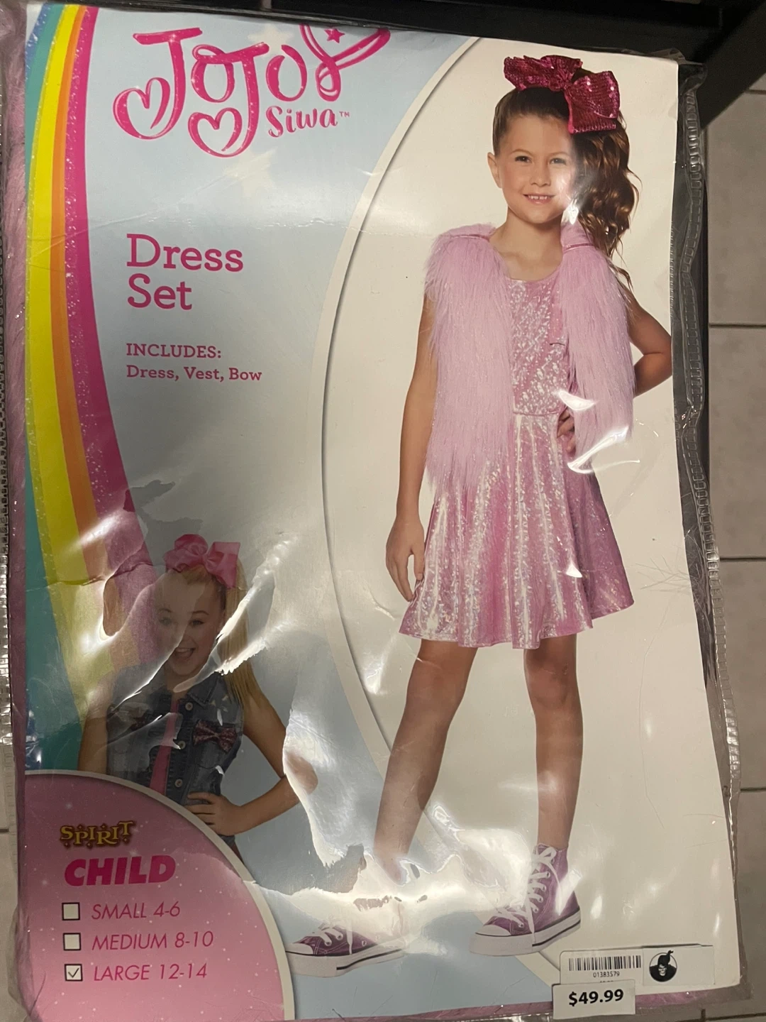 Selling a JoJo Siwa costume for kids. This set includes a dress, vest, and bow. The size is Large (12-14). Originally bought for $49.99. Perfect for a JoJo Siwa fan!