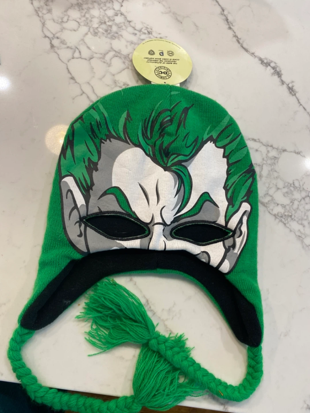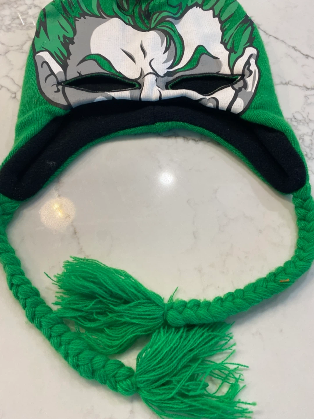 386Keep warm with this fun DC Comics Joker knit hat! It's green and features the Joker's face on the front can double as a mask. Perfect for any DC fan, as a costume to just a fun way to keep warm. Please refer to picture for more details on design and condition. Comes from a clean, smoke free and pet free home. Must be able to pick up. Location is around 401 and Allen rd. Practicing contactless porch pick up. Asking $5