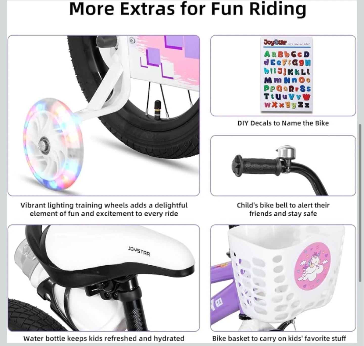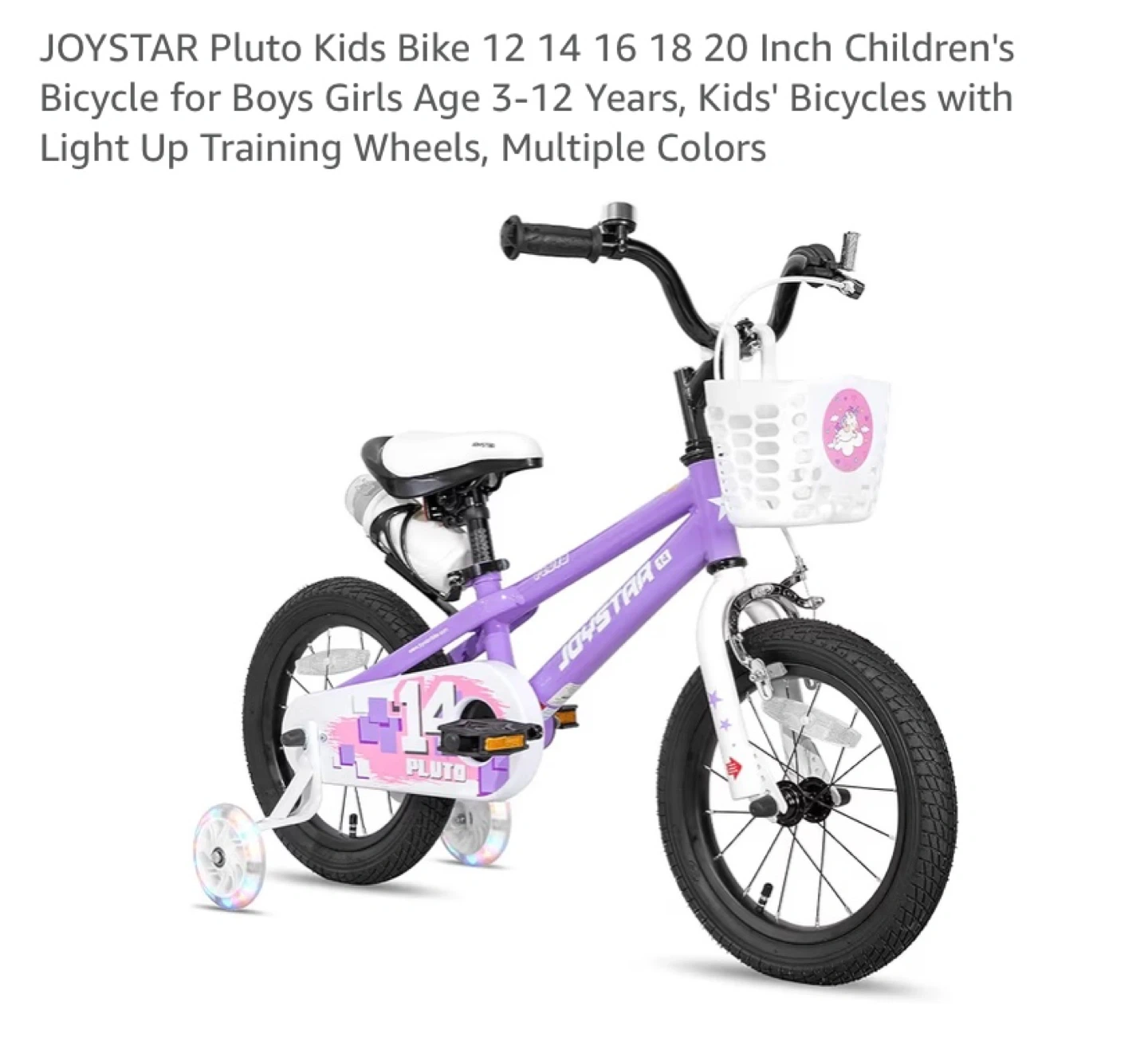 291New In Sealed Box JOYSTAR Pluto 14” Kids Bike with LED Training Wheels 14" bike for 3-5 years (35" - 47") child Purple 3 available $125 each (retail $170 plus tax) Pickup in Whitby