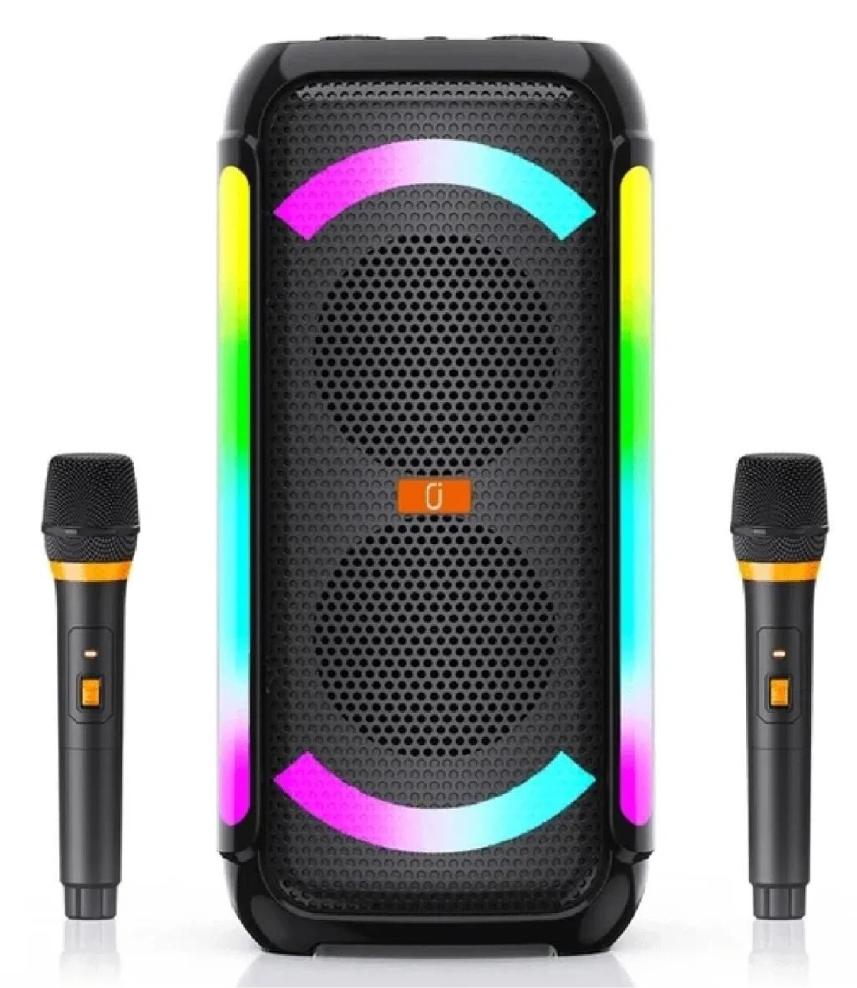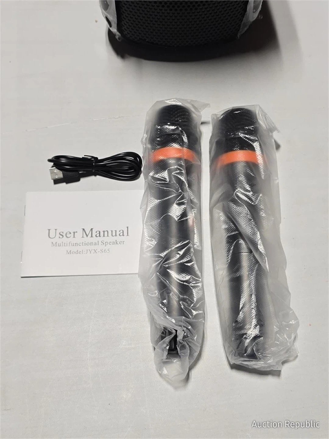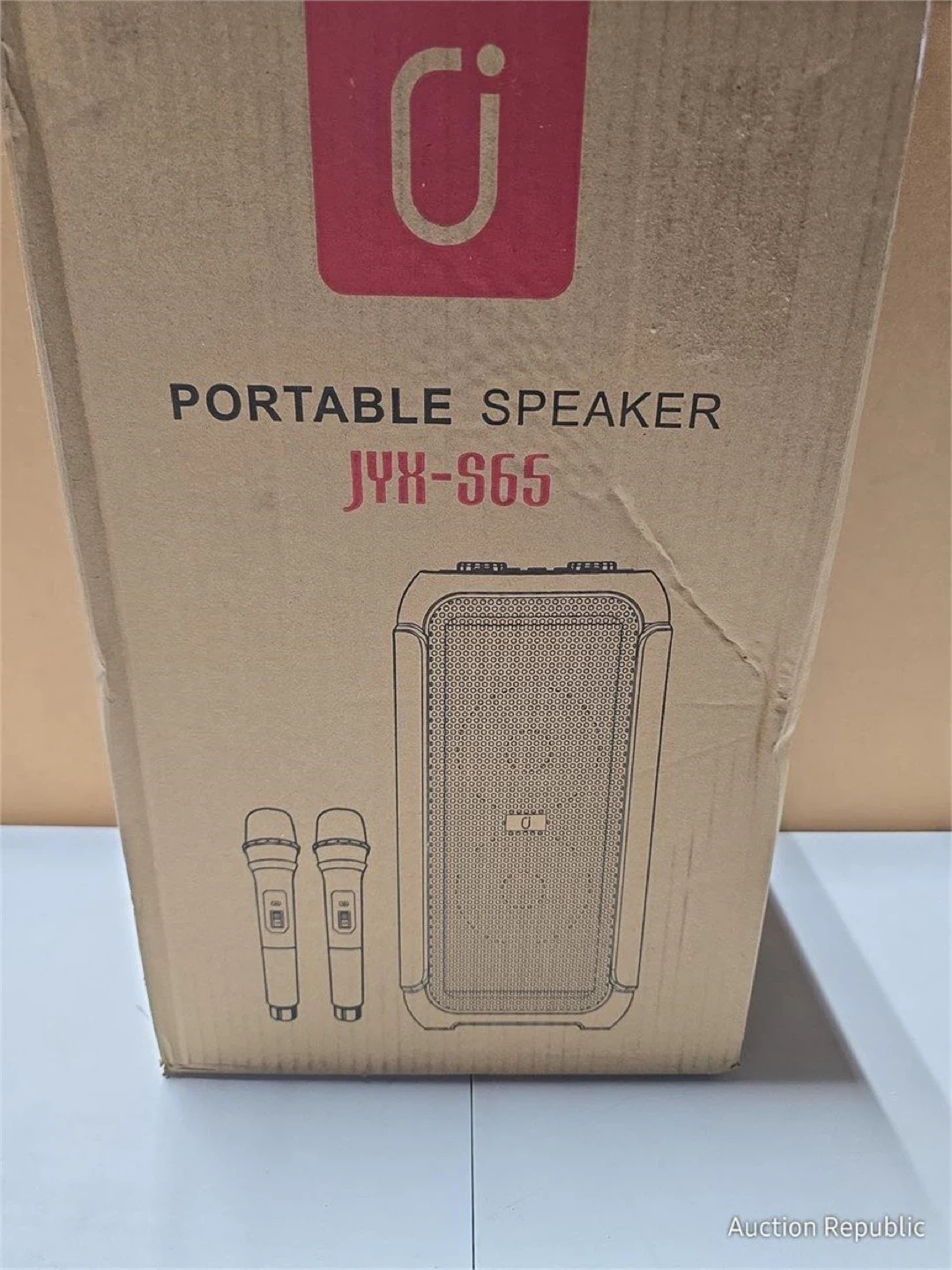 I'm selling a brand new JYX-S65 portable speaker! It comes with two microphones, a user manual, and a charging cable. The speaker is 4inchx2 in size and has a power supply voltage of DC 5V. It's still in its original box and packaging, never been used