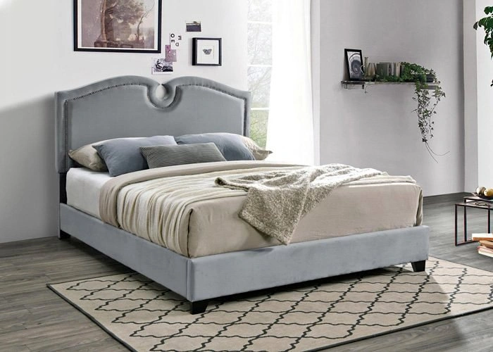 24- Panel Bed - Scrolled Headboard with Tufting and Side Nailhead Trim - Fabric Content: Polyester Blend - Footboard Height: 8" - Height From Bottom of rail to the Floor: 2.5" - 4 Slats - Weight Capacity: 662 lbs. Item is located in Port Robinson, if the item is listed its available. Mattress not included. Also available in a champagne colour.