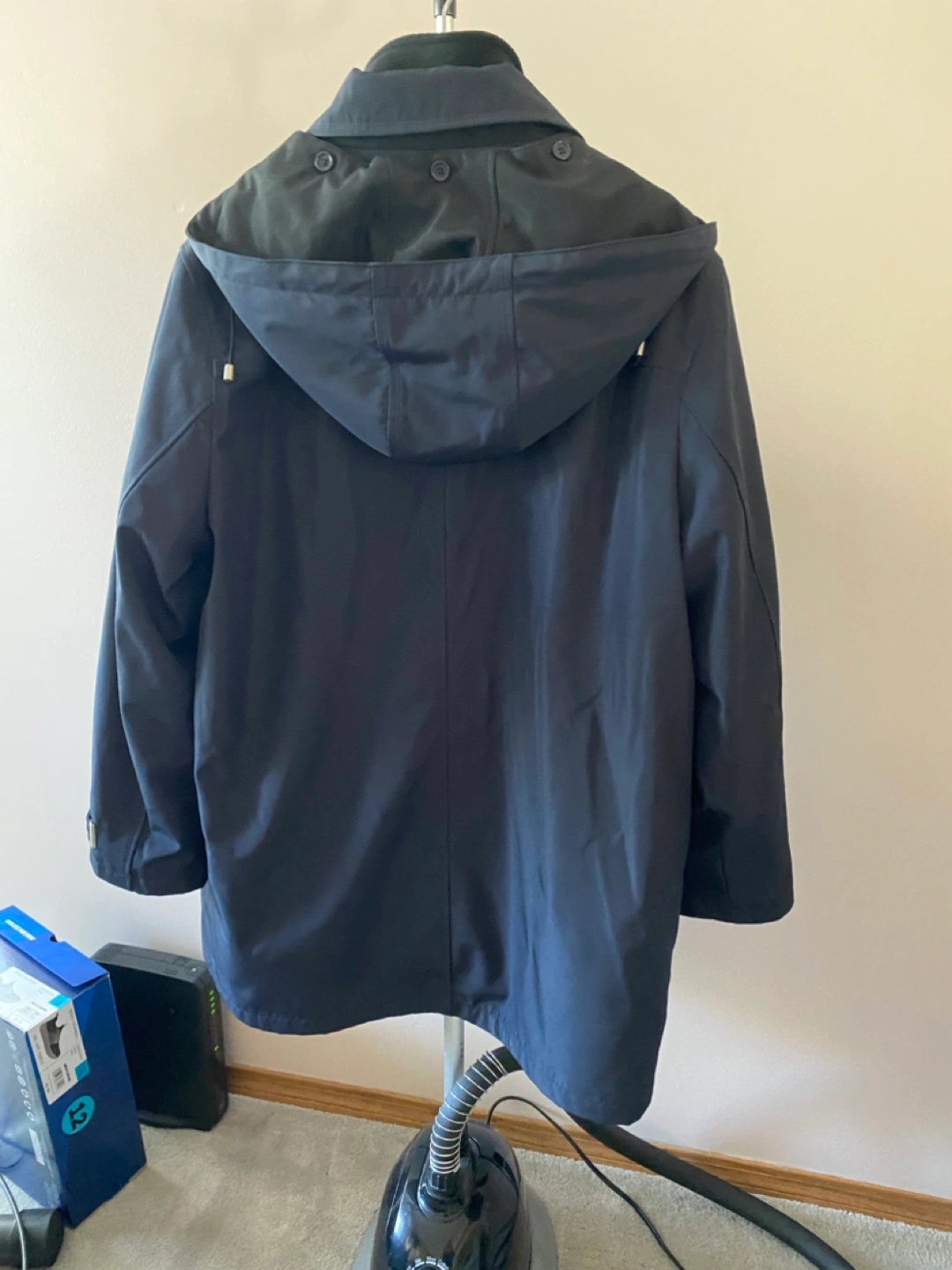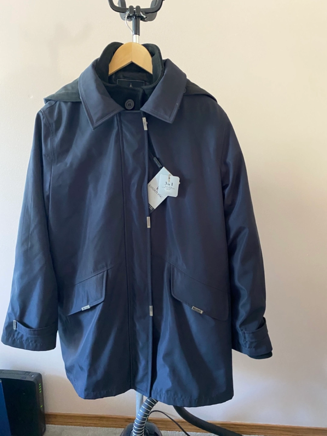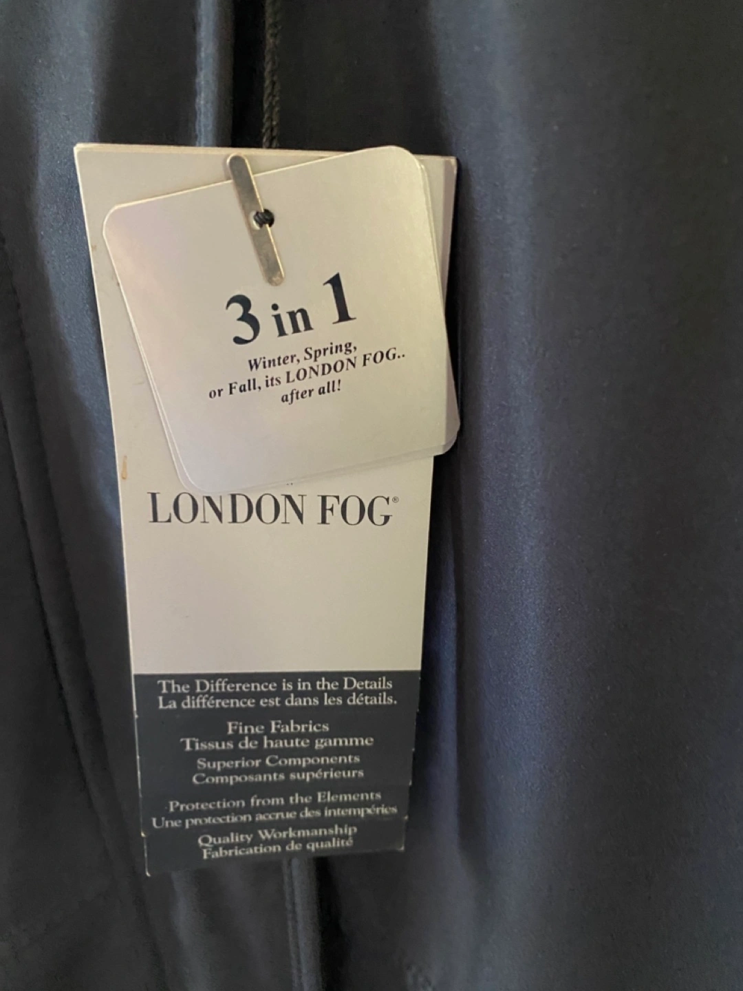 45Selling a New London Fog 3 in 1 coat, perfect for winter, spring, or fall! The tag says, "The Difference is in the Details". Size XL (16-18). Navy Blue with black inner jacket. Pick up in Sundance.