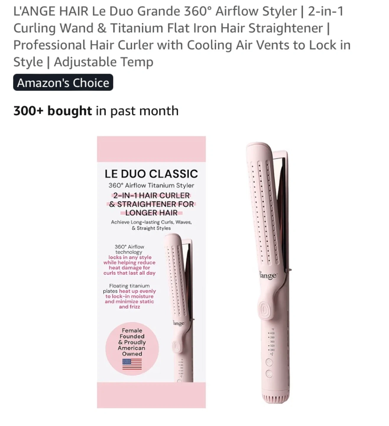 296New, open box L'ANGE HAIR Le Duo Grande 360° Airflow Styler | 2-in-1 Curling Wand & Titanium Flat Iron $60 (retail $100) Pickup in Whitby VERSATILITY FOR ALL YOUR FAVORITE LOOKS - Whether you’re looking for smooth, sleek strands or beautiful curls and waves, Le Duo Grande lets you achieve it all. STUNNING RESULTS - This easy-to-use styler features longer (5.4”) floating titanium plates with rounded edges for even heat distribution and creaseand snag-free styling, especially mid-length hair or longer. SET IT AND FORGET IT - Adjustable temperature 280°F-430°F means you choose your preferred heat, while the fan and 360° vented airflow instantly cool hair on contact, locking in style and shine