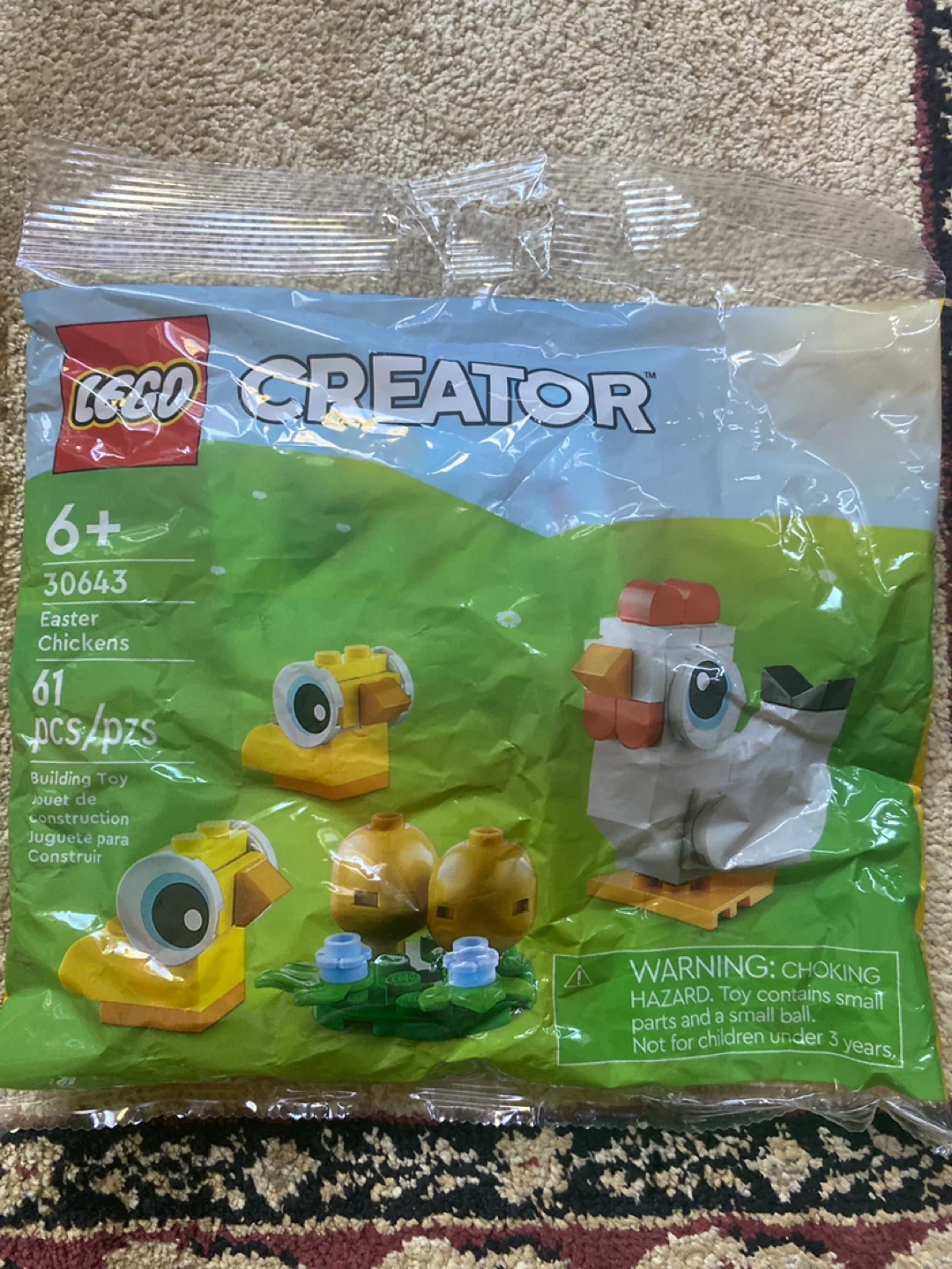 60Selling a brand new LEGO Creator Easter Chickens set! This set is perfect for builders aged 6+. It includes 61 pieces to create adorable Easter-themed chickens. A fun building toy for the holiday season