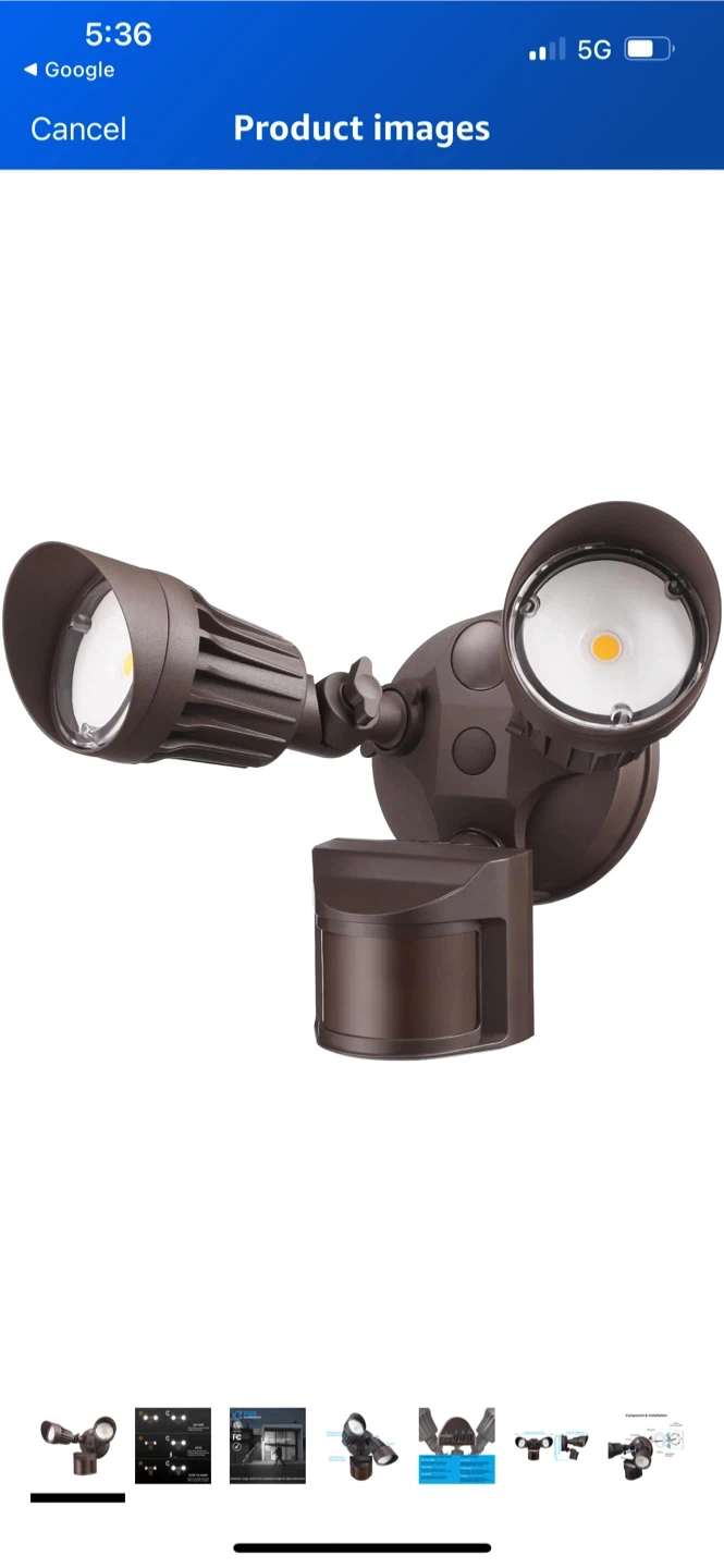 LeonLite LED Security Light, brand new in box! It features a 20W dual head with motion activation and emits 1800 lumens at 5000K daylight. The die-casting aluminum construction ensures waterproof rating and long lifespan. Easy and fast DIY installation!