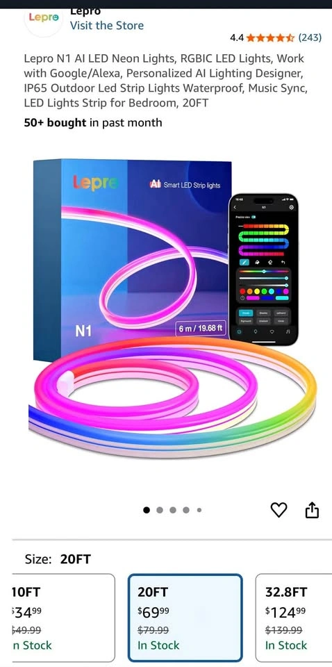 New Lepro N1 6M 20Ft AI LED Neon Lights Google/Alexa