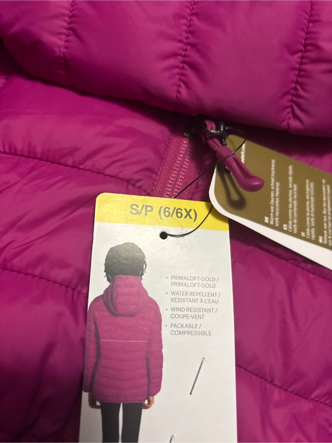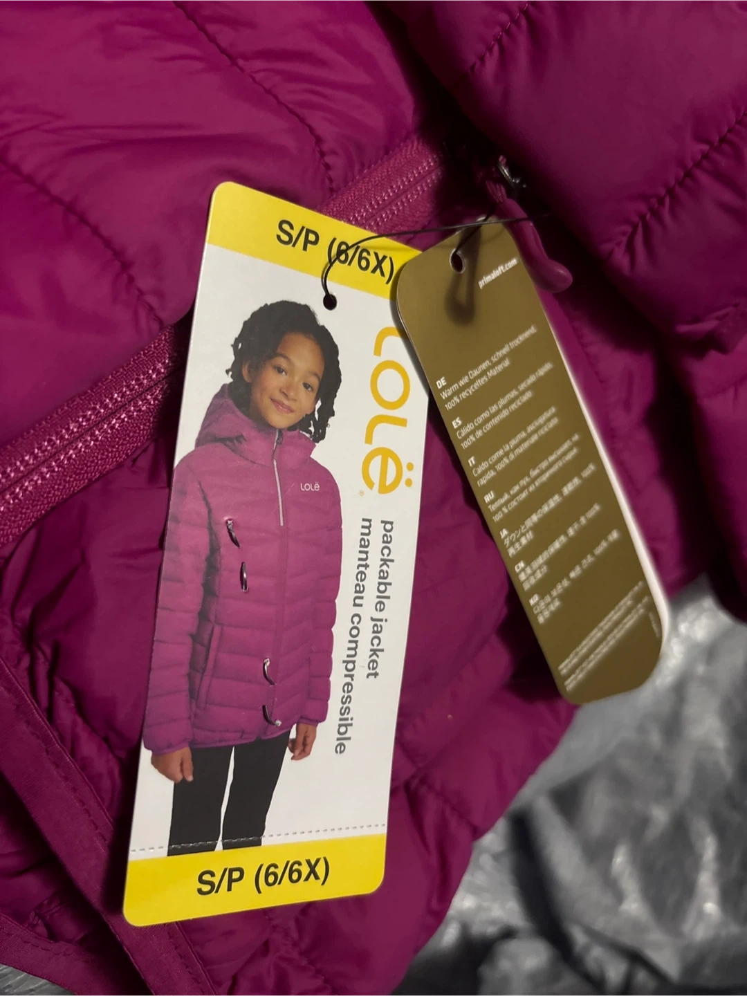 This is a brand new Lolë packable jacket for kids! It's a size S (6/6X) and features: - PrimaLoft Gold insulation - Water repellent material - Wind resistant design - Packable/compressible for easy storage