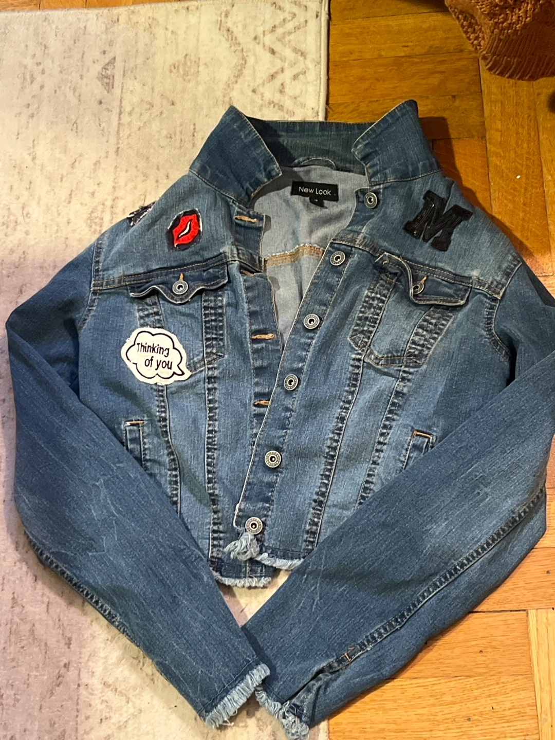 Selling a cute denim jacket from New Look! It's a size 4 and has some fun patches on it. Perfect for adding a bit of flair to your outfit