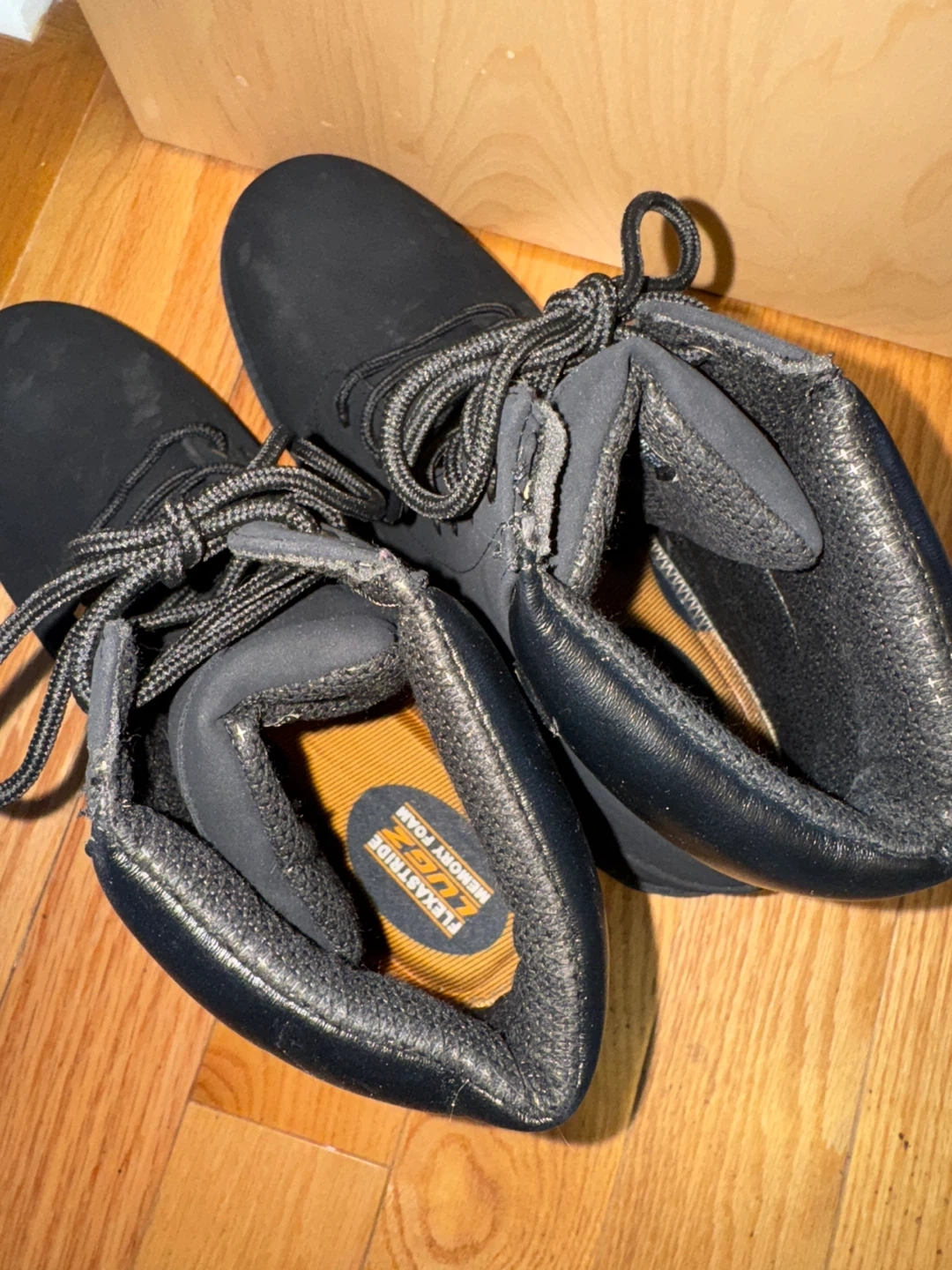 520Never worn outside, only tried on inside so soles are not worn. Does have a small rip on the top leather of the right shoes. A little dusty as it has been sitting in storage. Features memory foam inside for comfort. Take a look at my other items if interested. Can bundle with my other stuff for cheaper! Can meetup in Markham. Cash only please