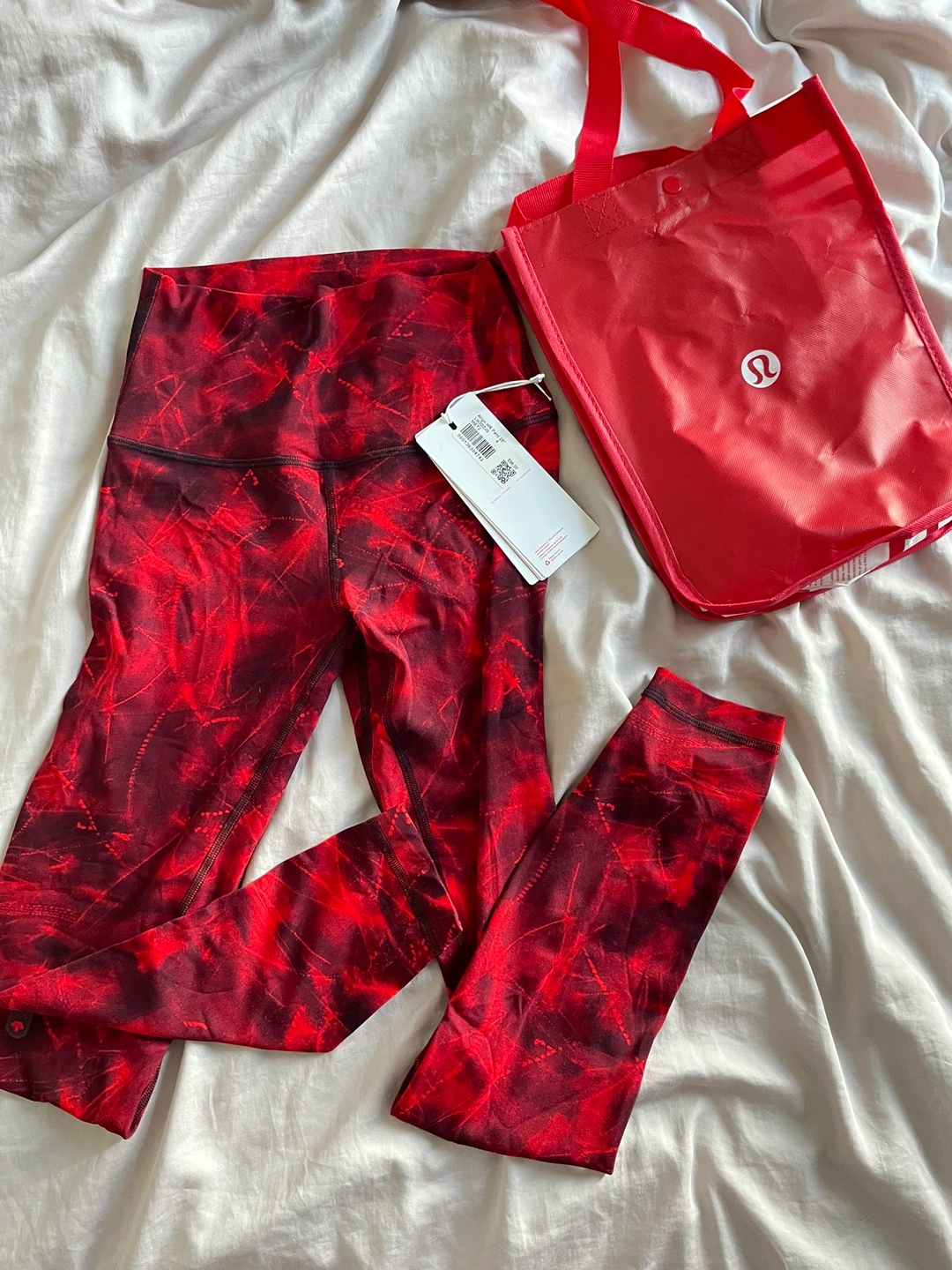 63Red and black abstract print, size 4. Comes with a free Lululemon tote bag.