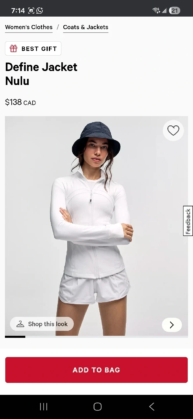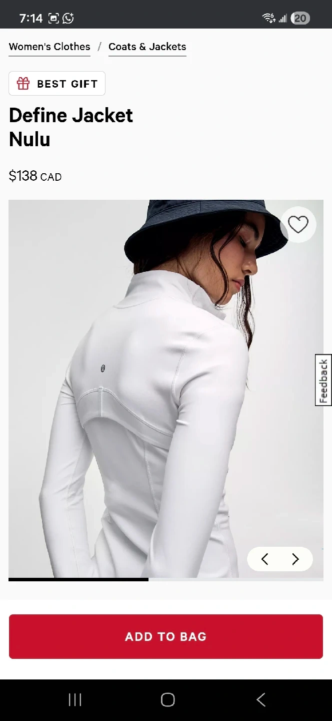 10This is a brand new Lululemon Define Jacket in white! The jacket is made from Nulu fabric. Originally bought for $138 CAD.