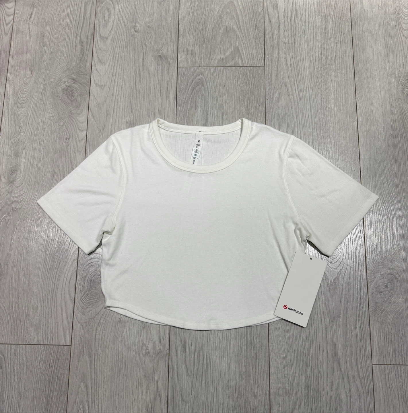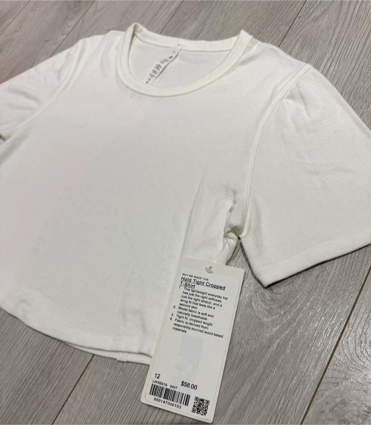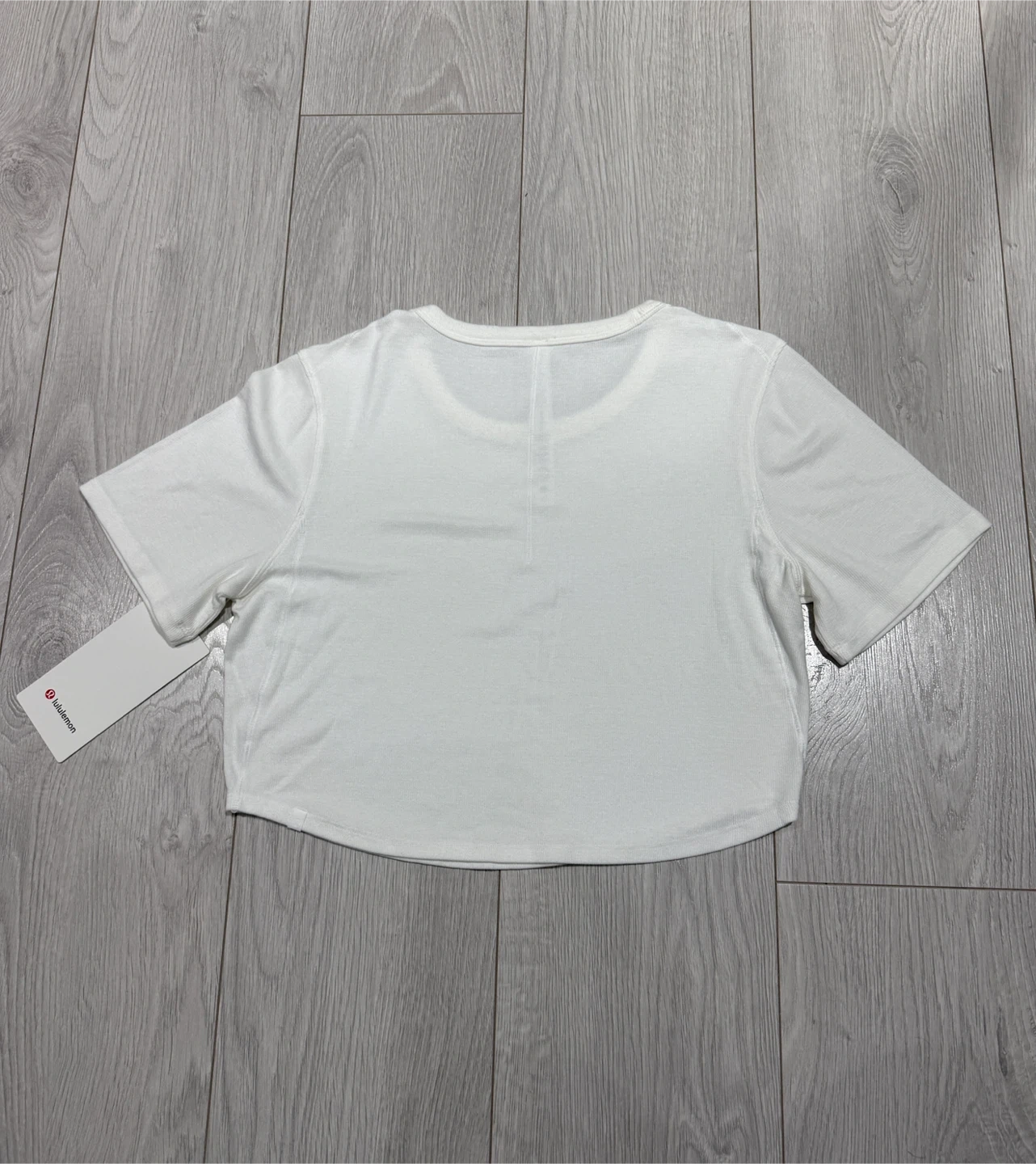 15This is a brand new Lululemon Hold Tight Cropped T-Shirt in size 12! The fabric is soft and naturally breathable, making it perfect for everyday wear.