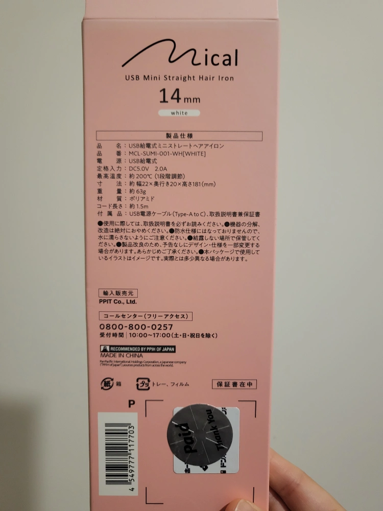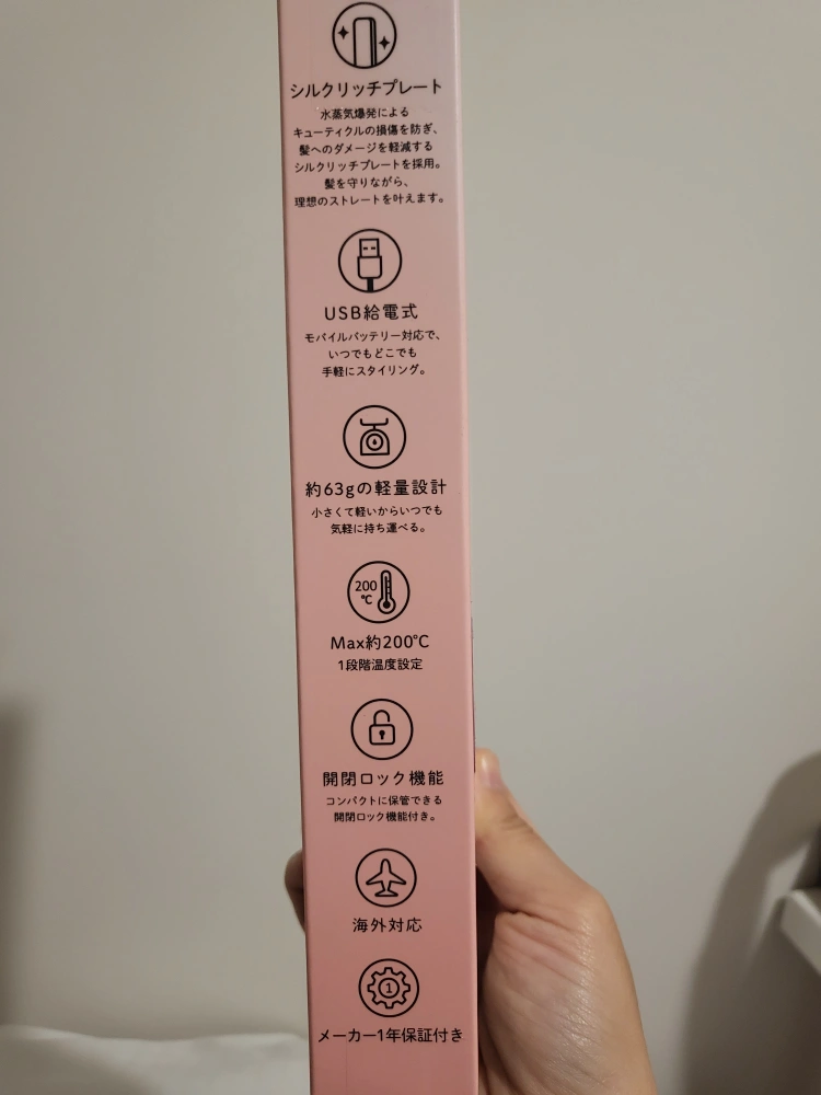 81Selling a Mical USB Mini Straight Hair Iron in white! It's a 14mm iron and comes in its original box. It's lightweight at approximately 63g, making it easy to carry around. It supports USB charging and has a maximum temperature of around 200°C