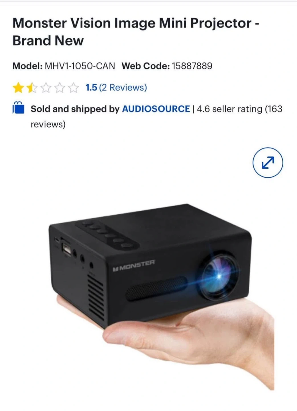 Selling a Monster Vision Image Mini Projector, model MHV1-1050-CAN. ready for a new home! Looking for offers