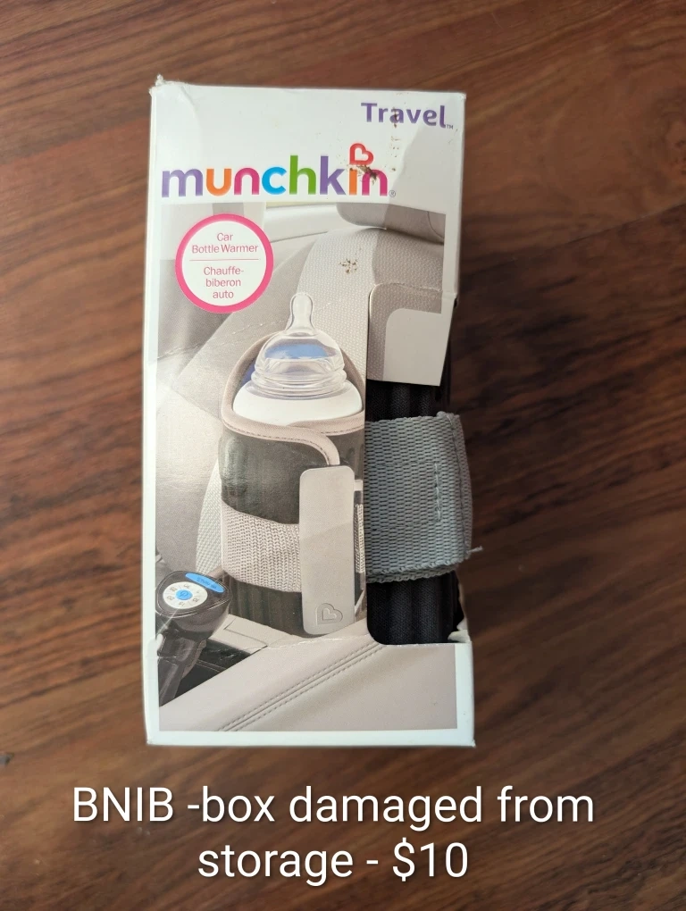 60I'm selling a brand new Munchkin Travel Car Bottle Warmer! It's still in the box, but the box has some damage from storage. Perfect for warming bottles on the go