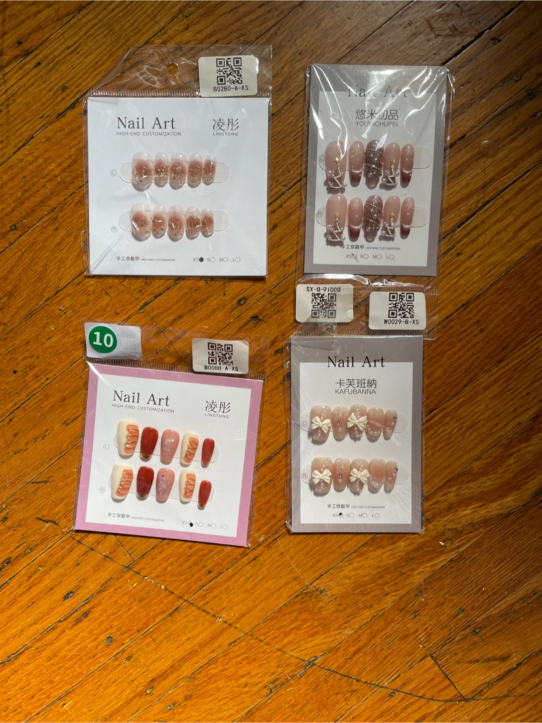 Brand new nail art sets for high-end customization! Each set comes in its original packaging and includes a variety of designs. Perfect for adding a touch of elegance to any look ,the size : XS