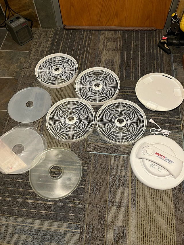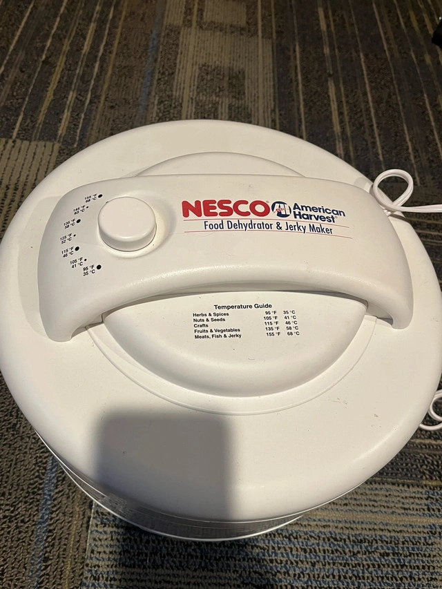 12Nesco American Harvester Food Dehydrator, brand new. Ranges from 95F to 155F temperature, 7 different settings. Has 4 trays and comes with 4 fruit roll trays. No holds, cash only. Contact Colin at 403-803-6two23. In knob hill SW Calgary for pick up.