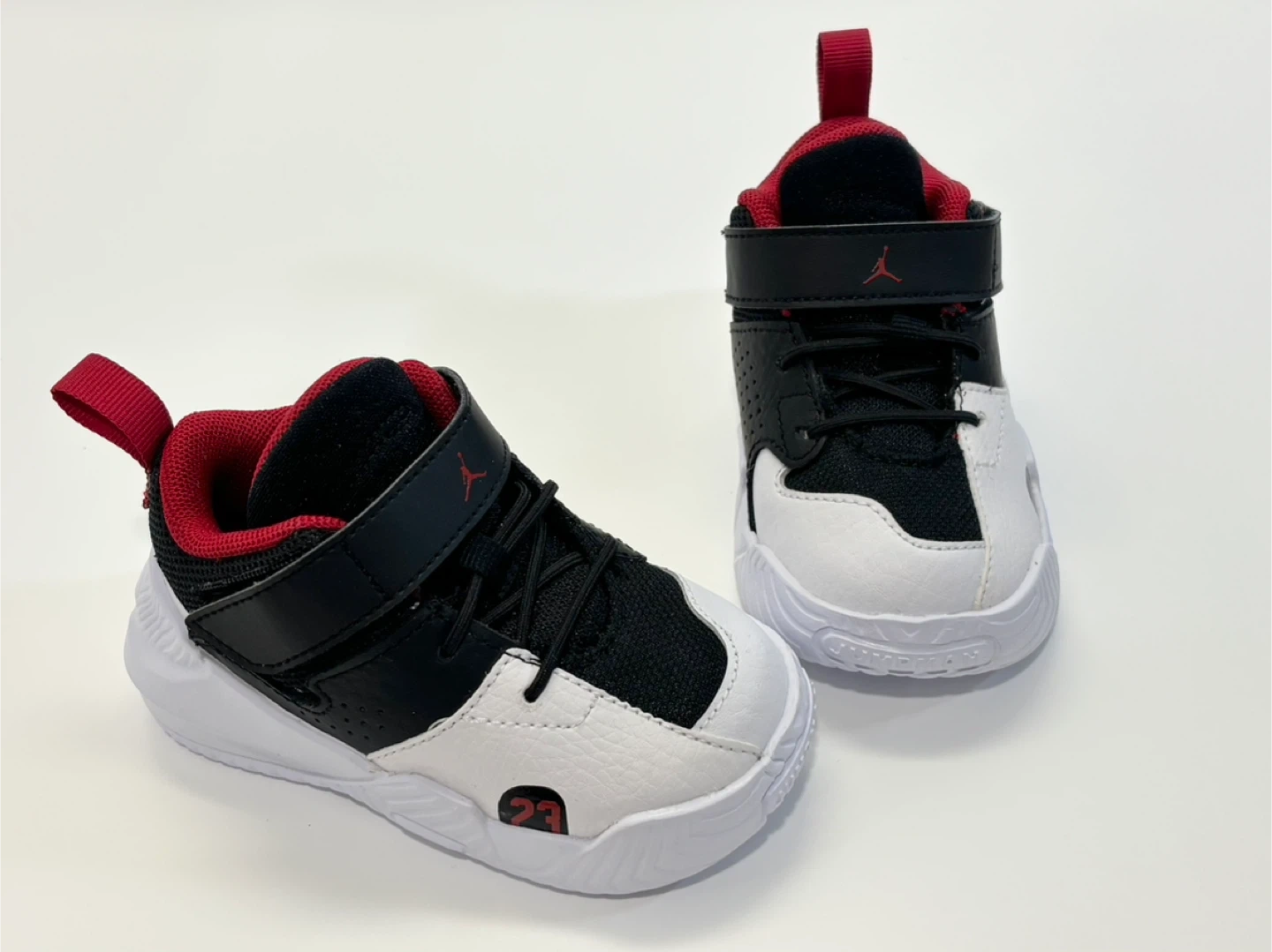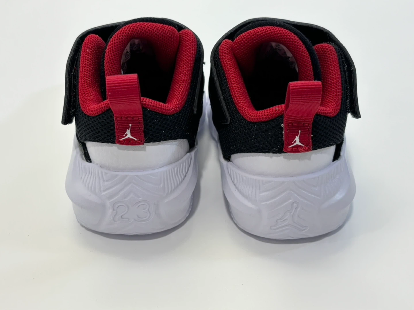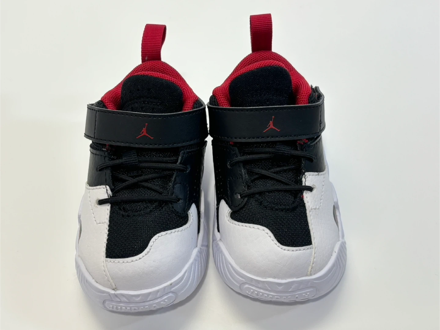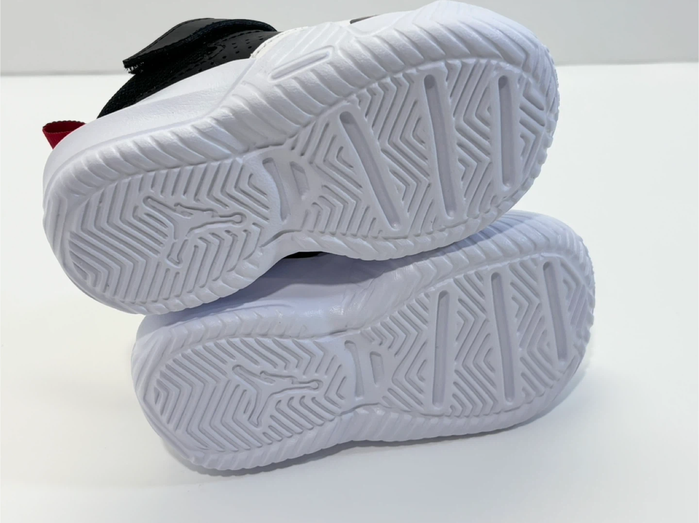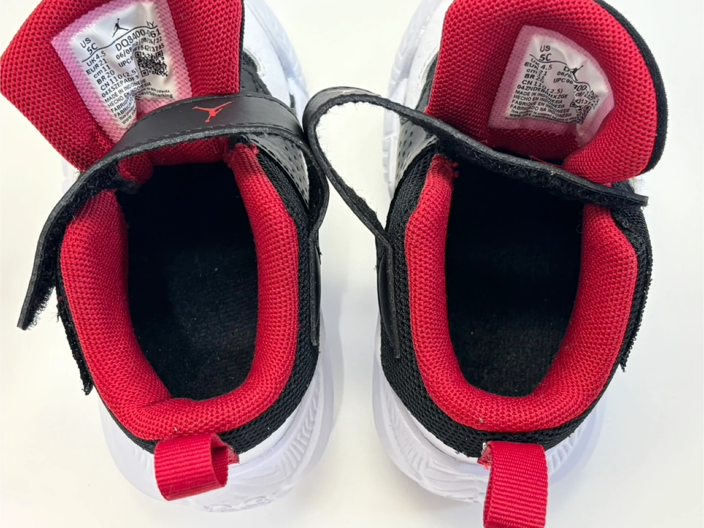 New ! Never worn Nike Jordan toddler shoes . They're in a stylish black and white colourway with red accents. Size is 5C Toddler size 5 toddler