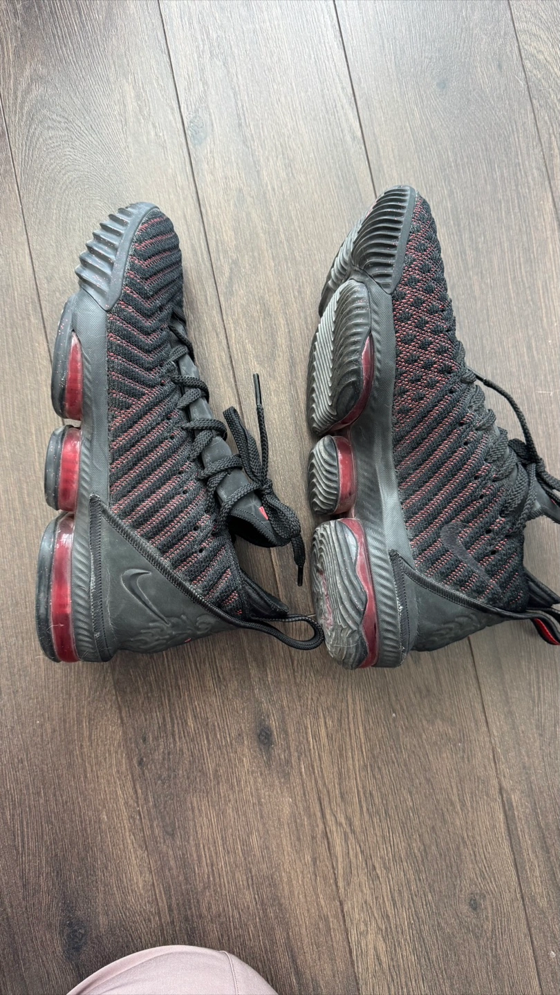 Black and red Nike LeBron basketball shoes. Size 8