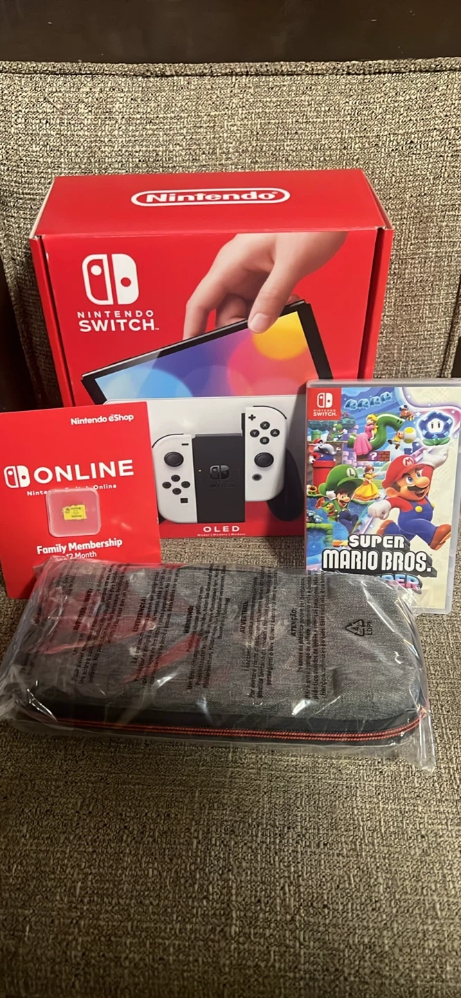 99Selling a brand new Nintendo Switch OLED, never opened! It comes with the game Super Mario Bros. Wonder and a Nintendo Online Family Membership for 12 months. Everything is still in its original packaging.