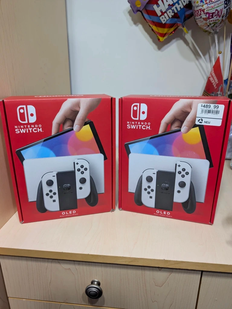 0Selling 2 brand new Nintendo Switch OLED model with white Joy-Cons! It comes with the box and all included components. The original price for each was $489.99. Free complementary Joy-Cons. Buy one for $425 or 2 for $800. Price negotiable.
