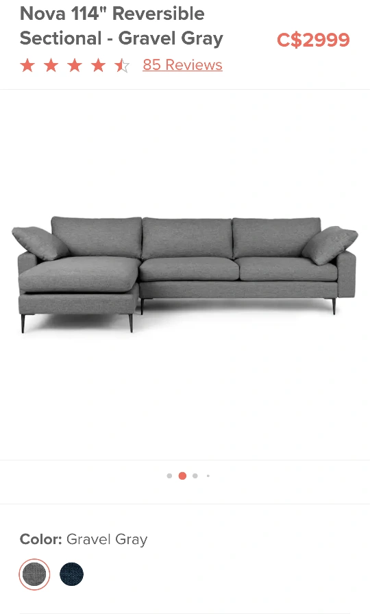 NEW Nova 114" Reversible Sectional - Gravel Gray