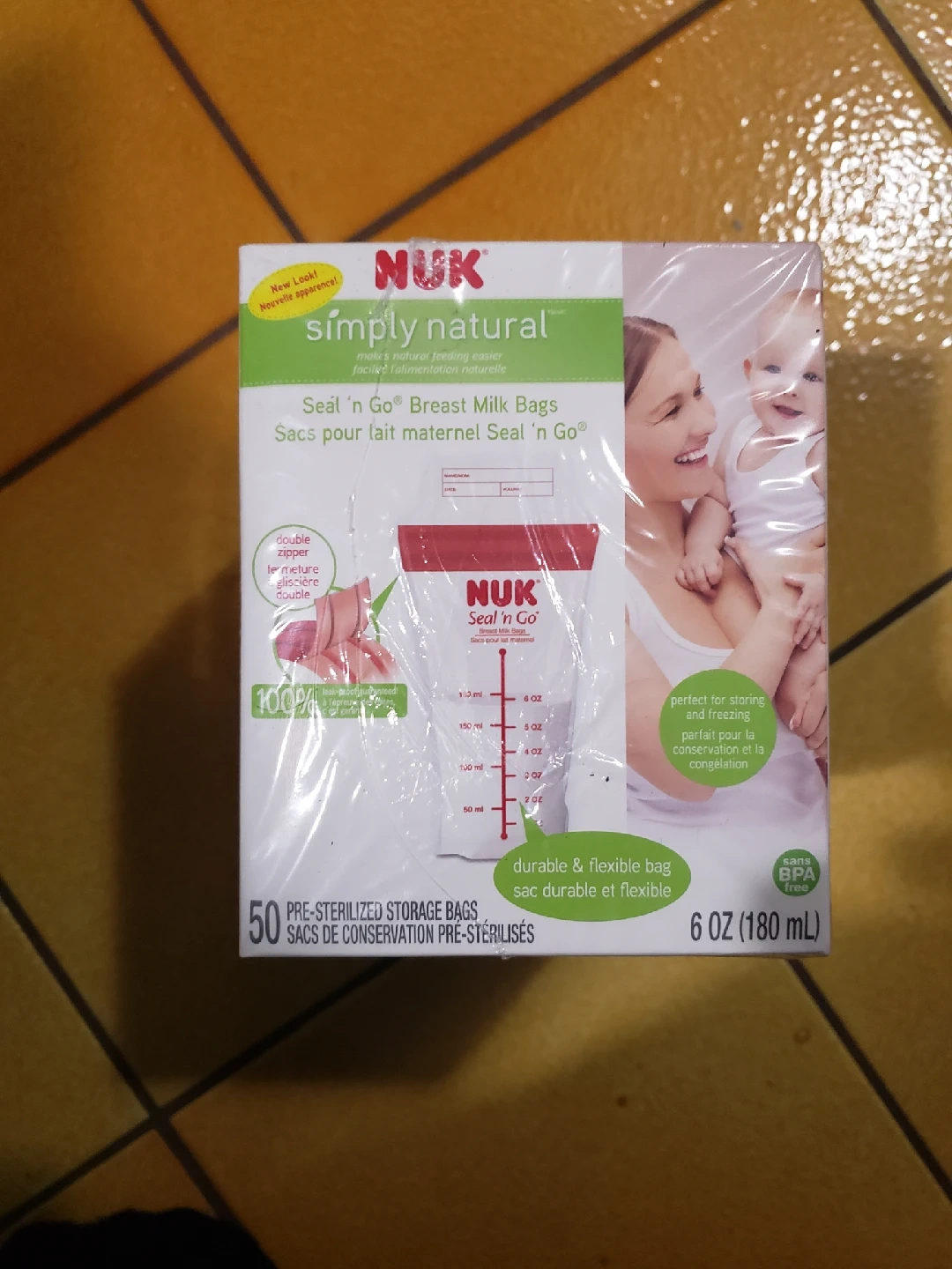 10I have a box of NUK Seal 'n Go breast milk bags for sale. They're pre-sterilized and each bag holds 6 oz (180 ml). These bags are durable and flexible with reinforced seams to keep milk fresh. Perfect for storing and freezing breast milk!