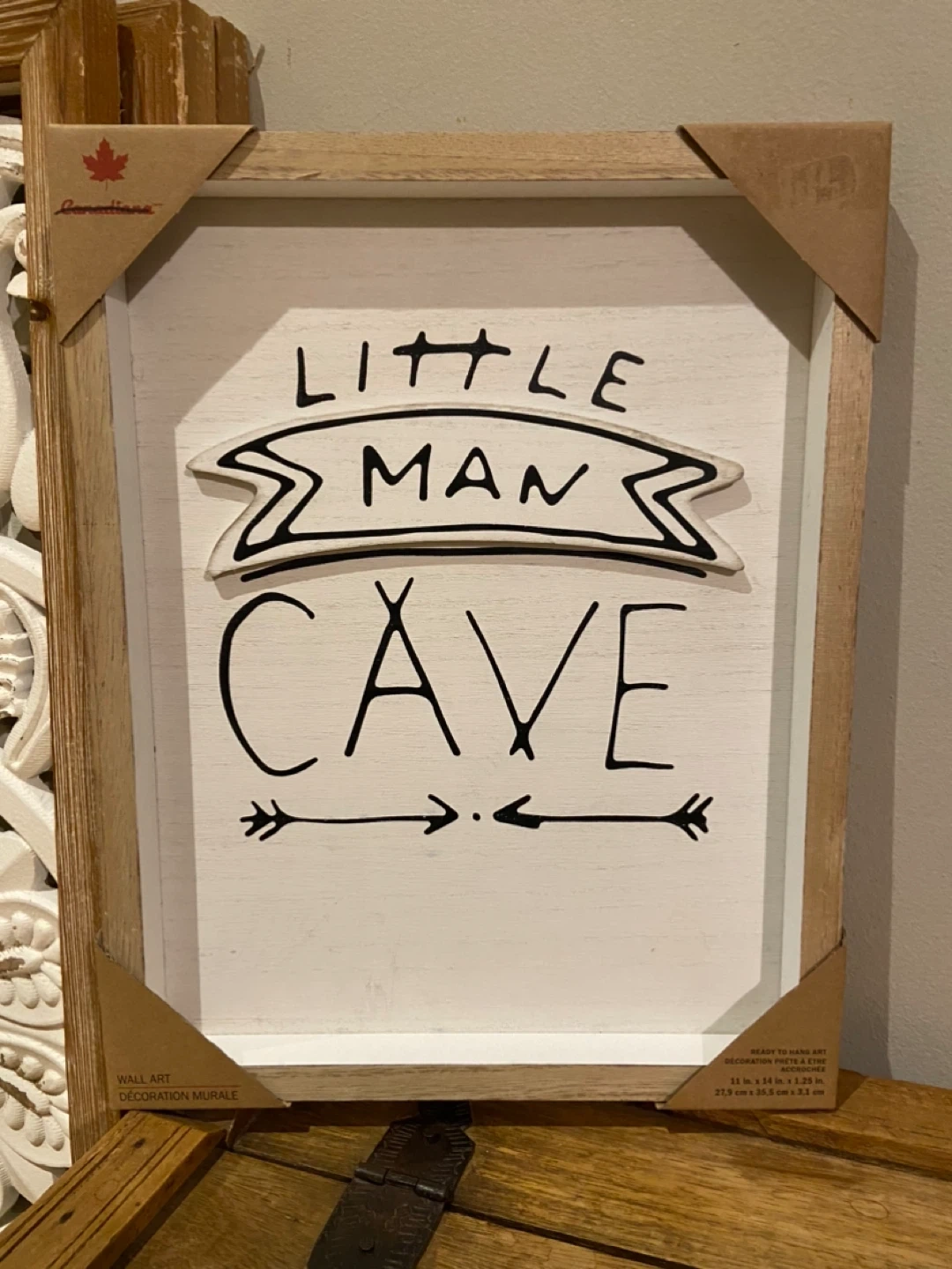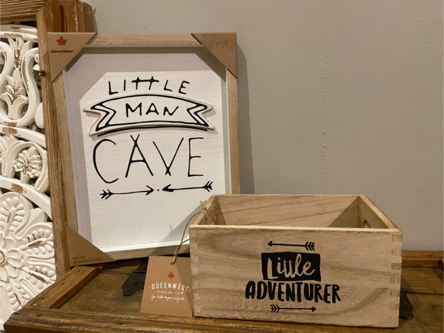 291New Nursery / Boys Room Decor Little Man Cave Wood Wall Hanging 11”x14” Little Adventurer Wood Storage Box 9.5” x 6.25” x 4.5” $25 for the set Pickup in Whitby