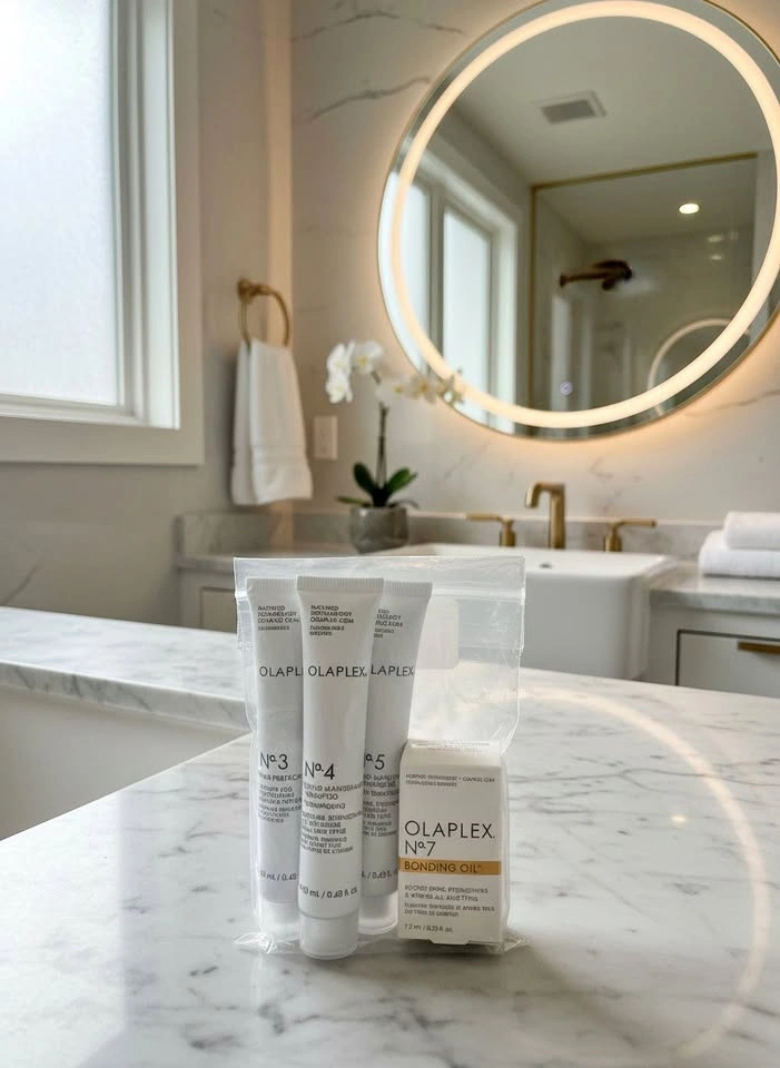 20Discover the magic of Olaplex with this brand new, sealed 'In Good Repair' Strength and Shine Travel Kit! Perfect for trying out the renowned Olaplex system, maintaining hair health on the go, or giving your damaged hair a much-needed boost of strength and shine. This comprehensive sample size kit includes four of Olaplex's most beloved products: Olaplex N°3 Hair Perfector (20ml), Olaplex N°4 Bond Maintenance Shampoo (20ml), Olaplex N°5 Bond Maintenance Conditioner (20ml), and Olaplex N°7 Bonding Oil (7.5ml). All products are sample/travel size, brand new, and come sealed in their original packaging, ensuring pristine condition. Experience stronger, healthier, and shinier hair with this powerful mini kit!