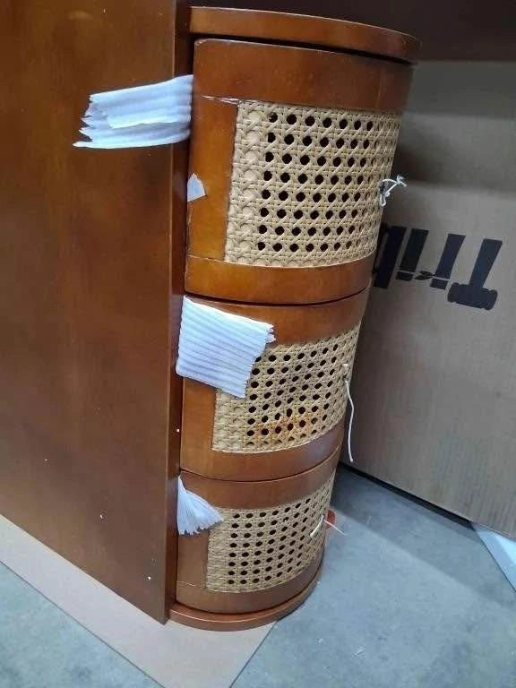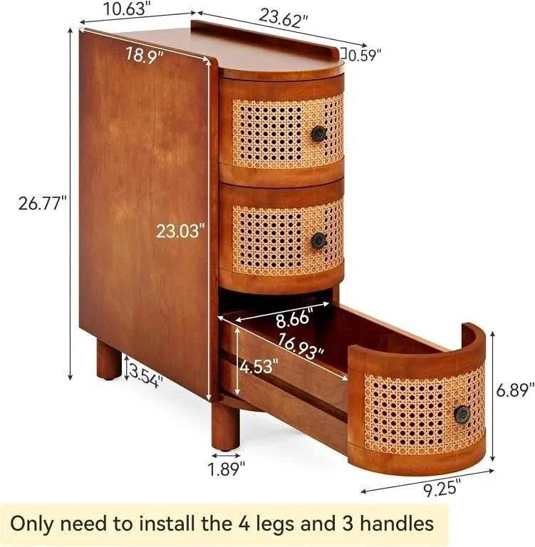 65LITTLE TREE End Table, Rattan Narrow Side Drawers, No Assembly Required, Solid Wood Nightstand, Bedside Table for Room, Bedroom, Office, Bathroom, Brown. Very Minor defect on the one of the drawer check in the pictures.