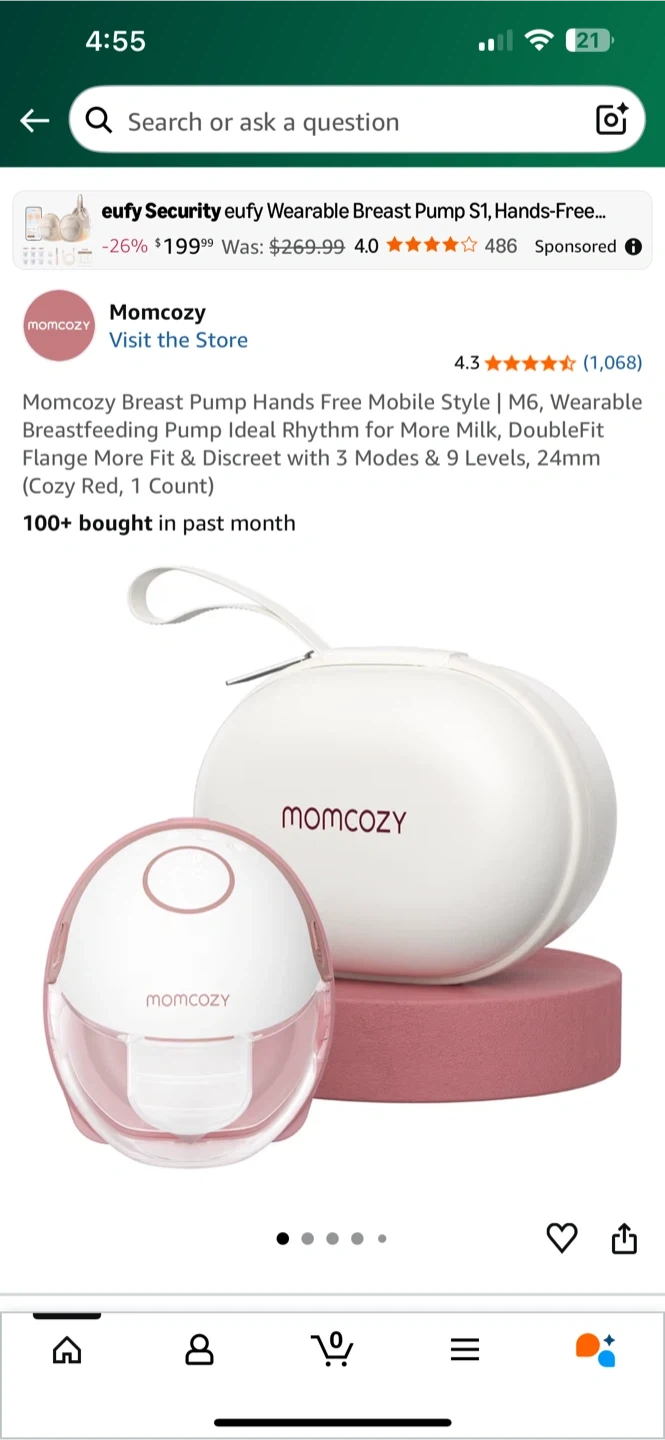 1000+Selling a Momcozy M6 Wearable Breast Pump in Cozy Red! This hands-free mobile style pump offers: - 9 Levels & 3 Modes - 2nd Gen Motor - Ideal Rhythm, Increasing Milk Supply - Efficient Pumping Experience For Moms - Increased milk supply - Perfectly fits a bra New open box. Pump is still in original packaging and parts however the box was opened.