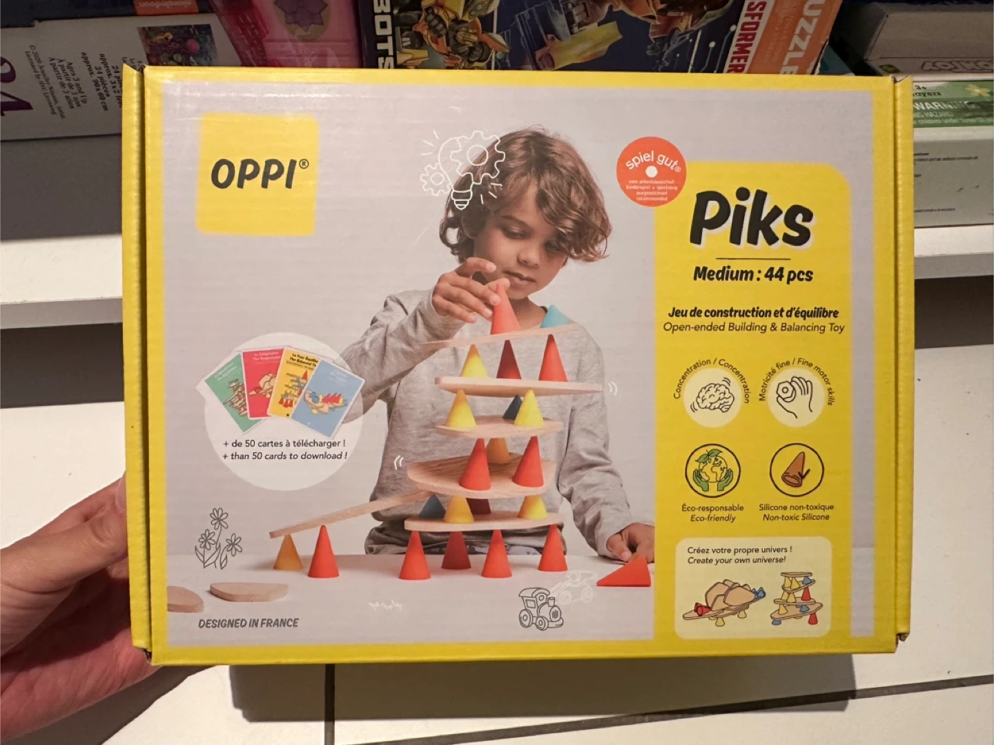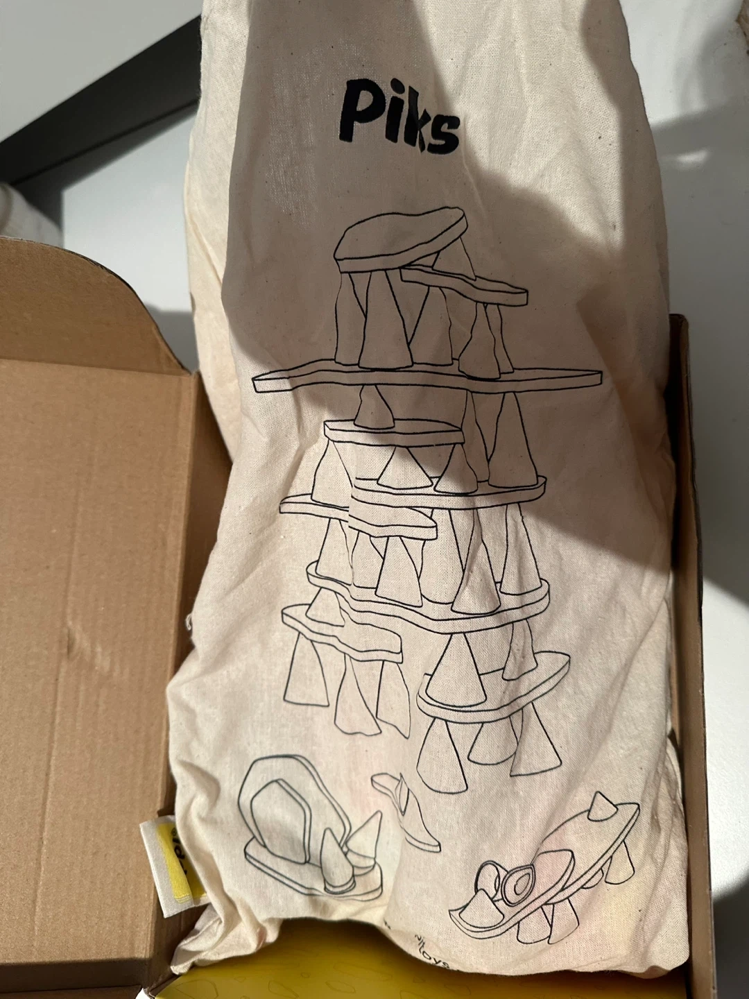 10Selling a new OPPI Piks Medium set with 44 pieces! This open-ended building and balancing toy is great for concentration and fine motor skills. It's eco-friendly and made with non-toxic silicone. Comes with the original box and a handy carrying bag!