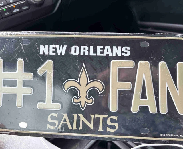 Show off your team spirit with this New Orleans Saints #1 Fan license plate! Brand new and still in its original packaging, this metal plate is perfect for any die-hard Saints supporter. Add some flair to your car or collection. Specifications: * Team: New Orleans Saints * Material: Metal * Condition: New, in packaging * Officially licensed NFL product Looking to add some more sports memorabilia to your collection? This plate is sure to be a touchdown! Just a friendly reminder: if the ad's up, it's still up for grabs!