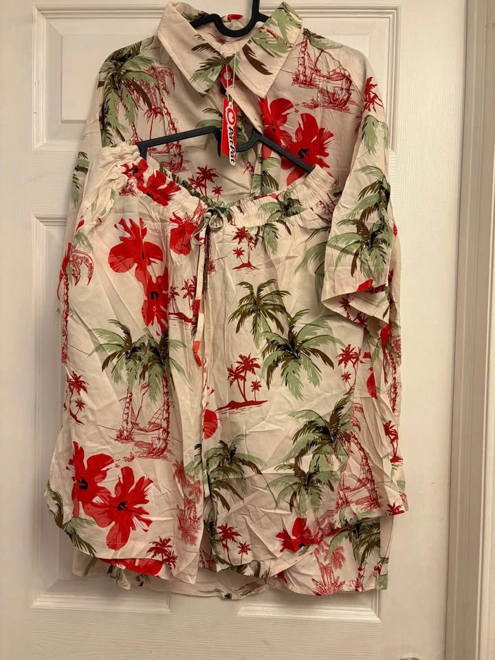 484New PATPAT Hawaiian Dad Beach Tropical Plant Allover Flower Print Shirt and Shorts Set Size: 2XL No holds