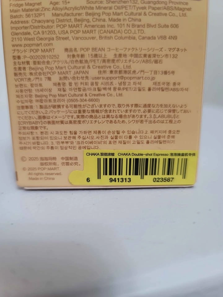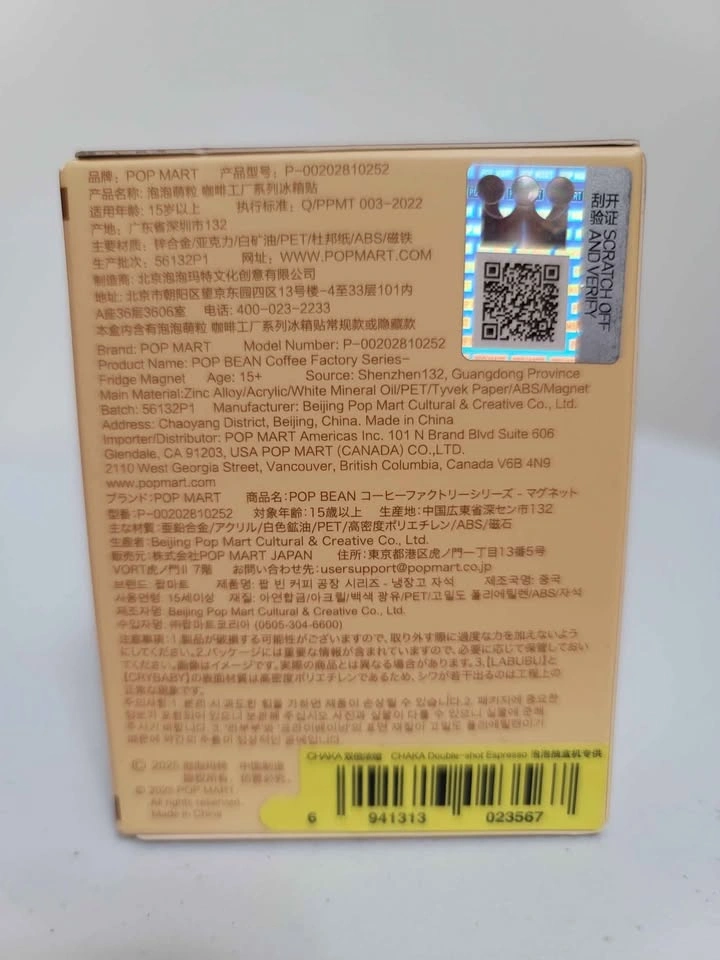 New Popmart Coffee Factory Popbean Magnet - Chaka