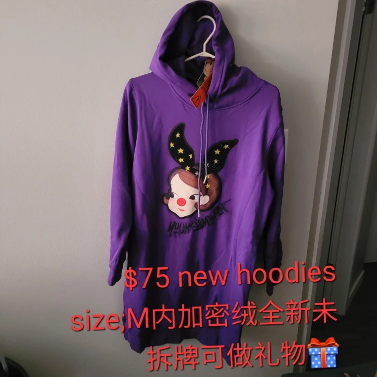 10This is a brand new purple hoodie dress, size medium! It has a cute design on the front. It's never been worn and is ready for a new home. Originally priced at $75
