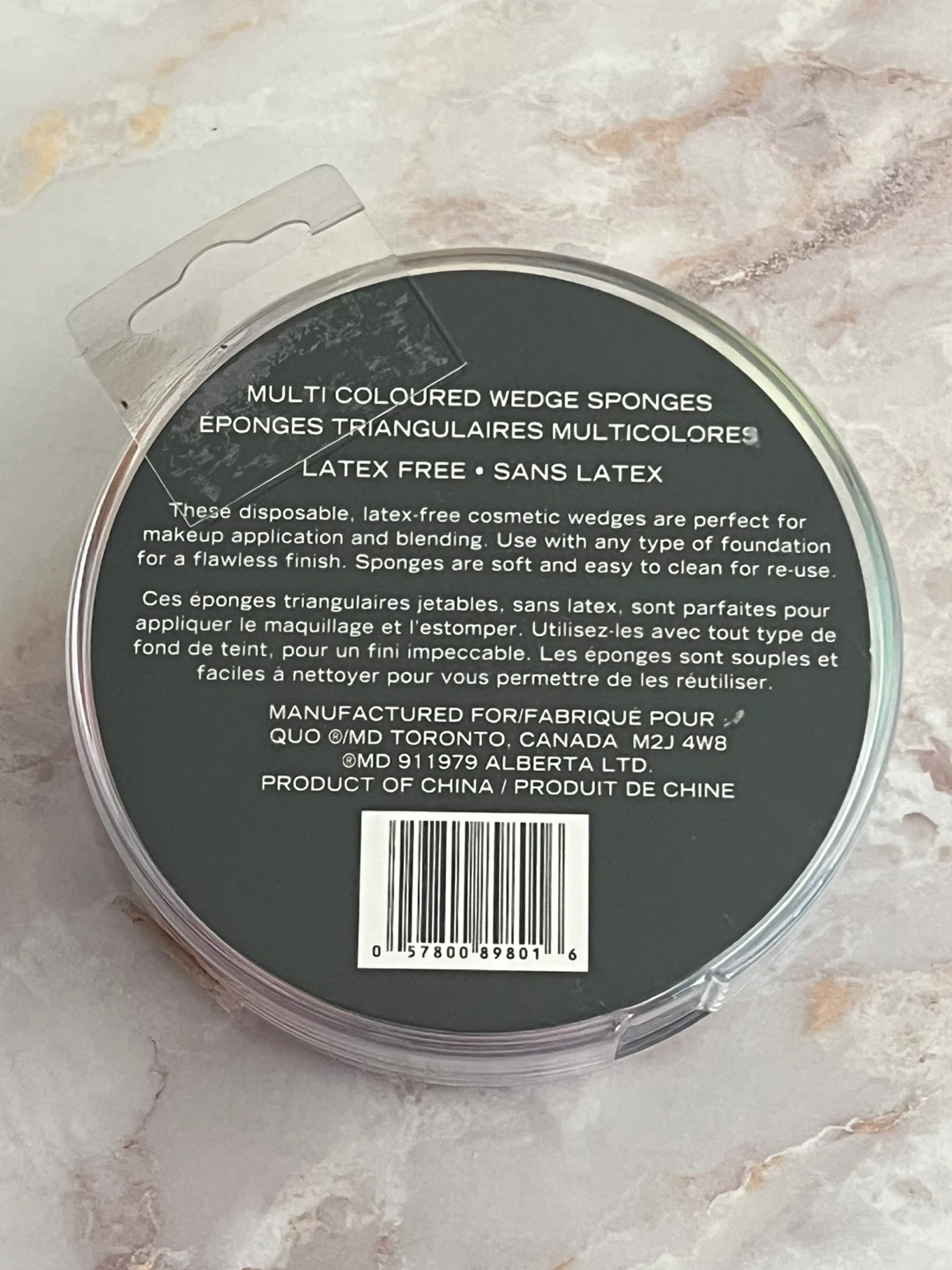 122New never used Selling a brand new pack of Quo multi-coloured wedge sponges! These latex-free cosmetic wedges are perfect for makeup application and blending. They're soft and easy to clean for re-use, so you can achieve a flawless finish every time Cash only Pickup only