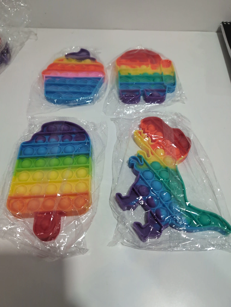 Selling new rainbow-coloured pop it fidget toys! They're still in their original packaging and are great for stress relief or just some fun fidgeting. Available in various shapes. Negotiable. More available. 4 for $20
