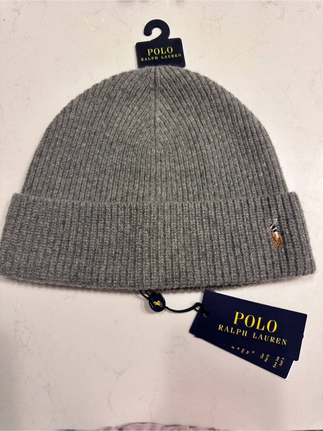 719Keep your head warm with this brand new with tags stylish Ralph Lauren Polo beanie hat! It's a lovely grey colour and made from a blend of 80% wool and 20% nylon. It's a one-size-fits-all, so you don't have to worry about sizing. Perfect for those chilly Canadian days!