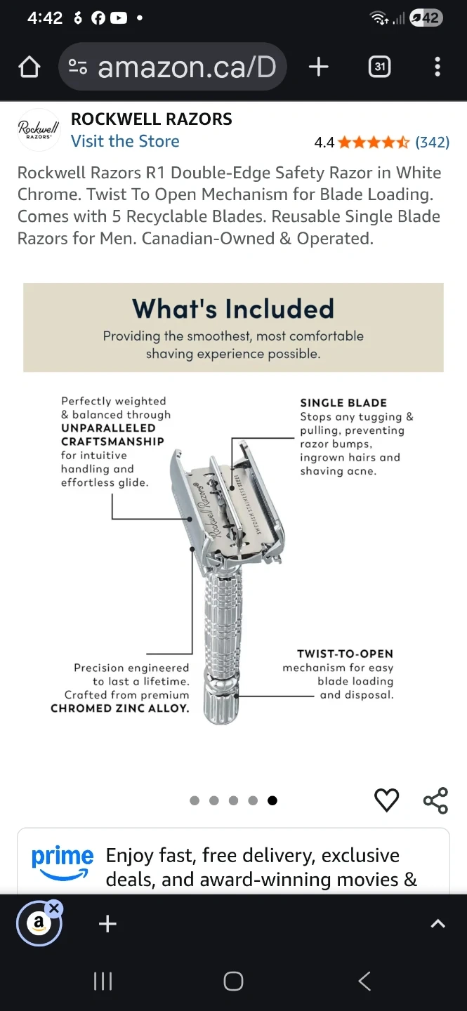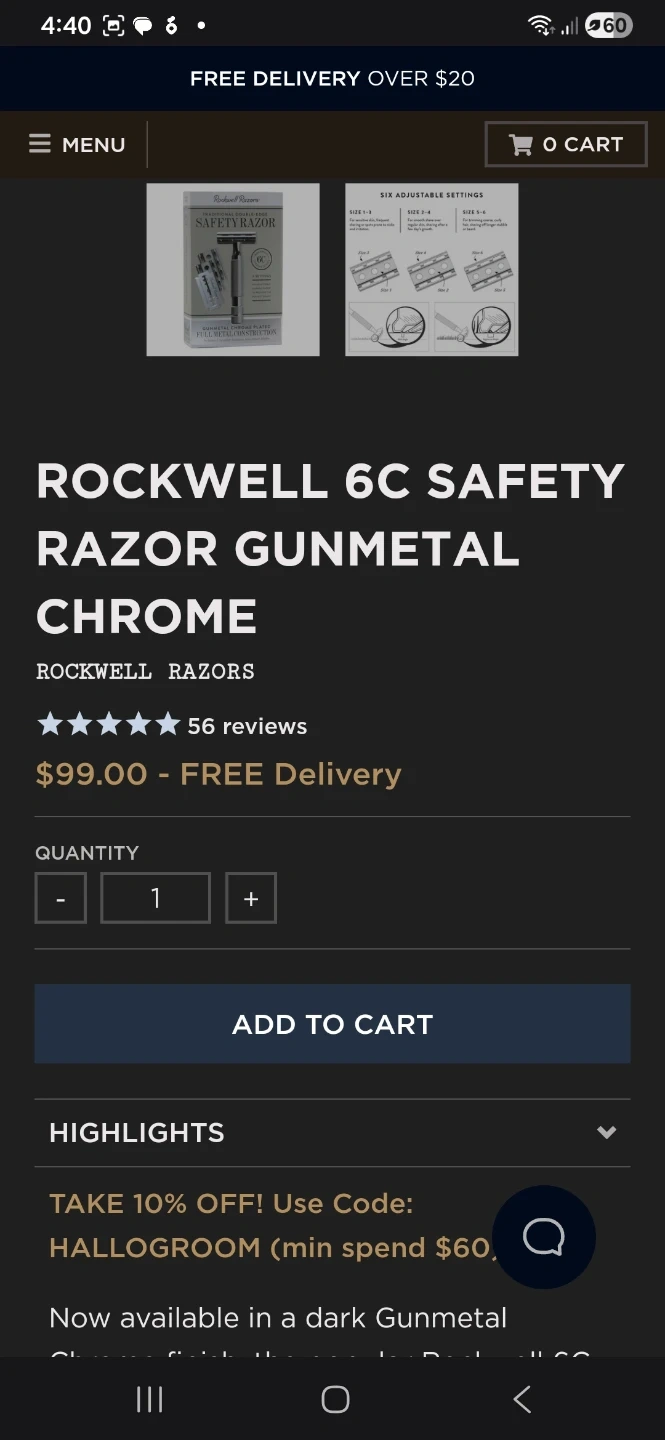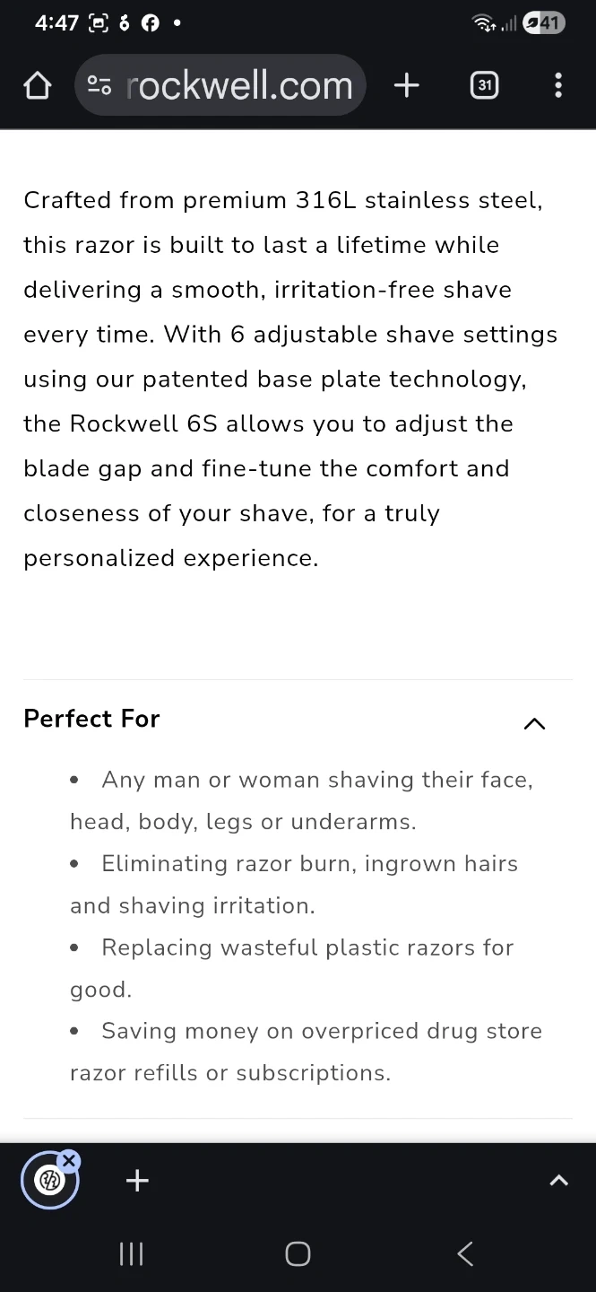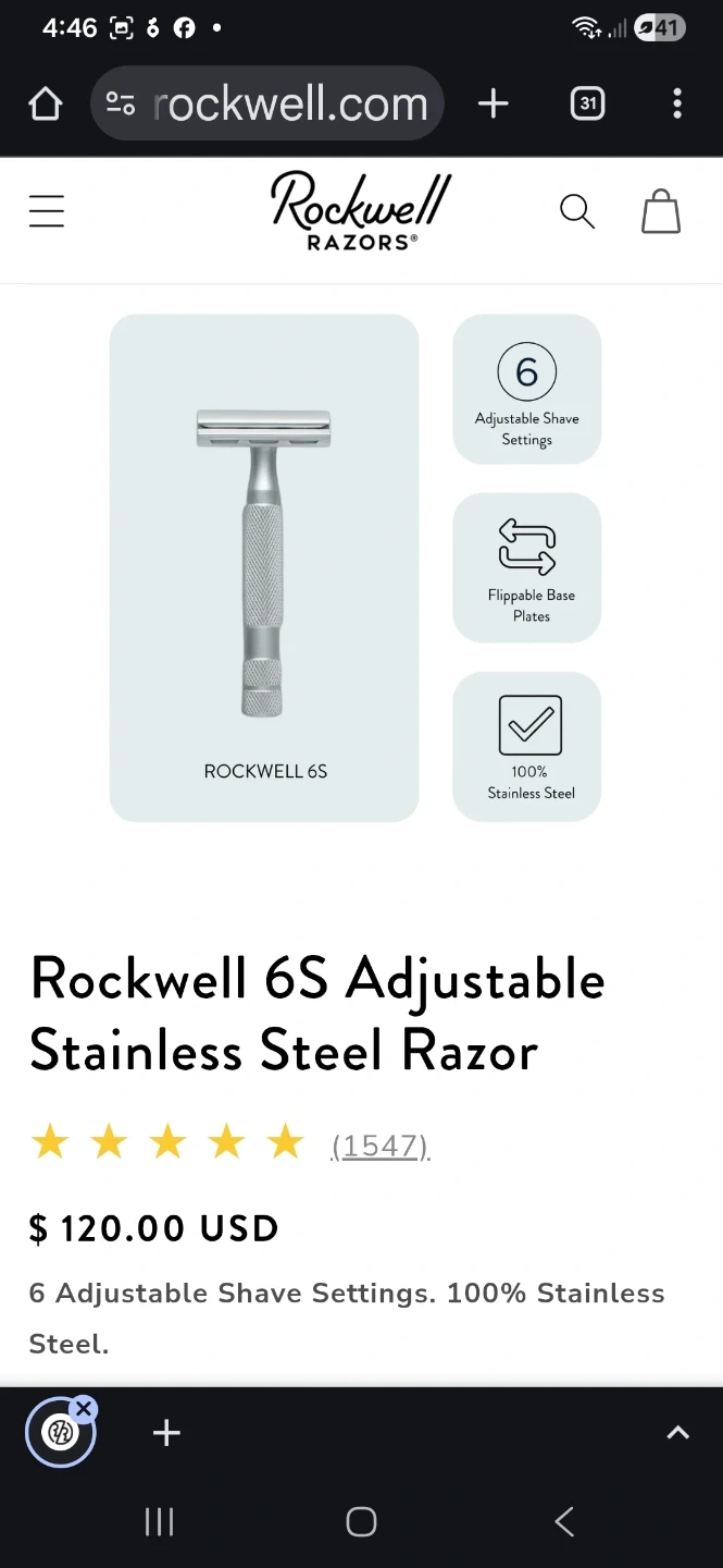 1000+NEW in box. Retails $99.00 Looking to upgrade your shaving routine -> experience a Rockwell Razors 6C Safety Razor in chrome. Traditional double-edge safety razor features 6 adjustable settings, get the perfect shave every time. Full metal construction and includes 5 Swedish stainless steel razor blades. Original box and instructions.