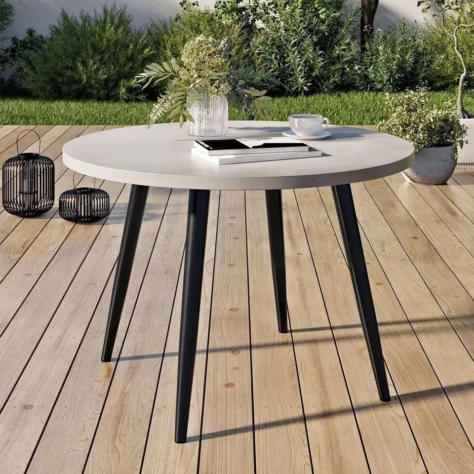 60Bought it from Walmart but never assembled it. The size turned out to be bigger than what our space could accommodate. PICKUP from BRIERDALE RD, CAMBRIDGE Heavy-duty, rust-resistant, powder coated steel frame First two photos are used as advertised photo on Walmart website. Rest of the photos are taken of the real product. Durable, all-season steel tabletop with hand-painted concrete finish Assembly required. Instructions, hardware kit and tools included Table measures 41.7 in. Dia. x 28.4 in. H. Overall product weight: 40.7 lbs