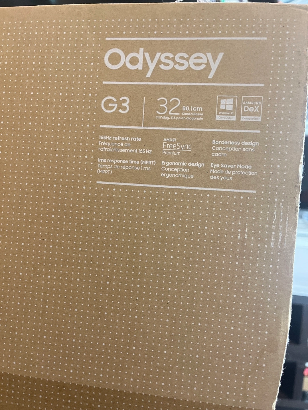 Brand new sealed 32-inch FHD gaming monitor. 165Hz refresh rate, 1ms response time. FreeSync Premium. Borderless design. Eye Saver Mode. Height adjustable, tilt, rotate. Brand new, still in box.