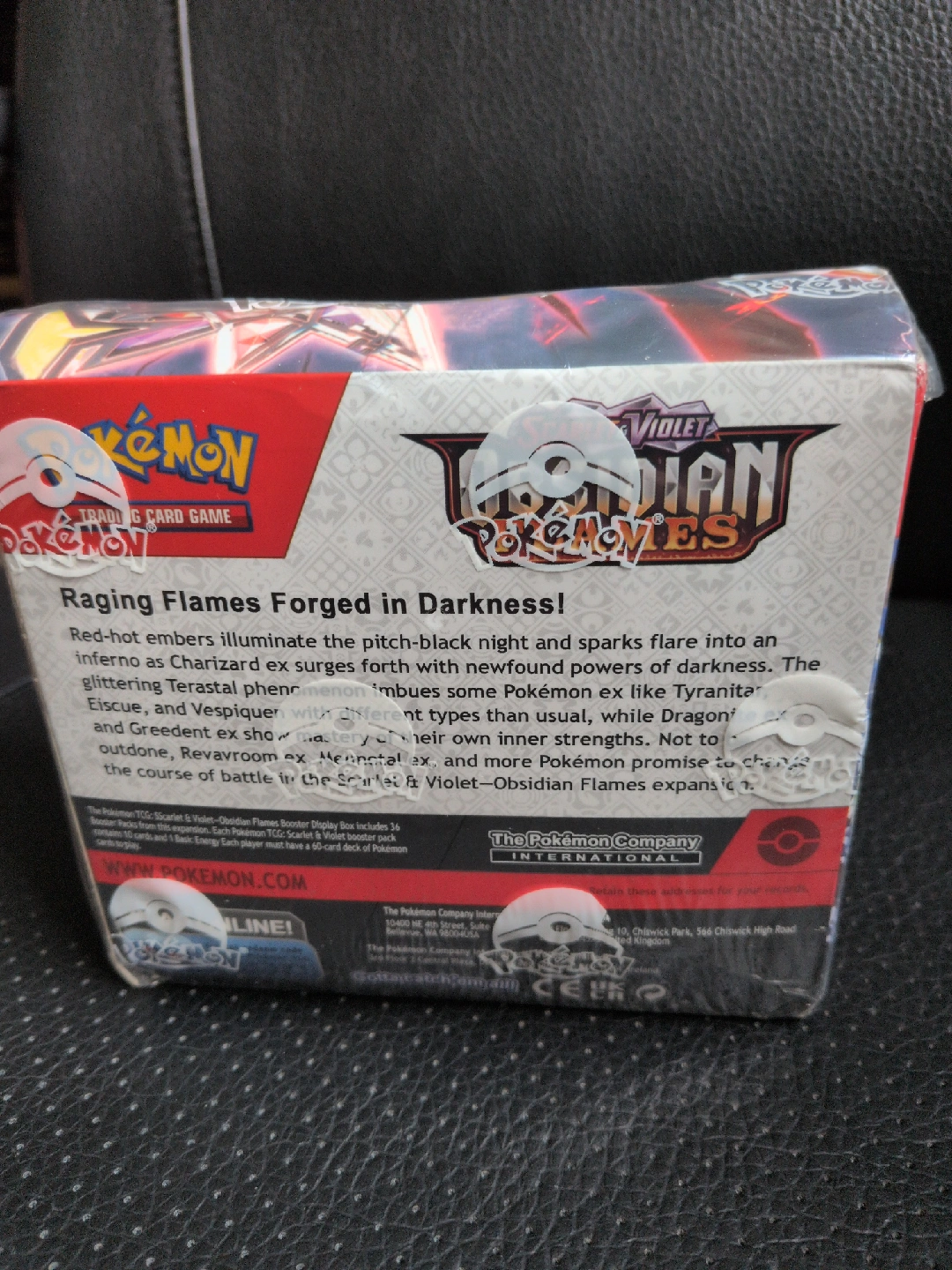 Selling a brand new, sealed Scarlet & Violet Obsidian Flames booster box! It's ready to add some Raging Flames to your collection and light up the pitch-black night! rare to find last box